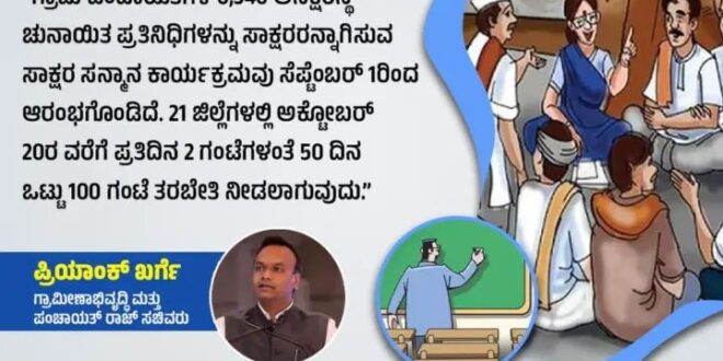 ಈ ಕುರಿತು ಮಾಹಿತಿ ನೀಡಿದ ಸಚಿವರು ಗ್ರಾಮ ಪಂಚಾಯಿತಿಗಳ 6,346 ಅನಕ್ಷರಸ್ಥ ಚುನಾಯಿತ ಪ್ರತಿನಿಧಿಗಳನ್ನು ಸಾಕ್ಷರರನ್ನಾಗಿಸುವ ಸಾಕ್ಷರ ಸನ್ಮಾನ ಕಾರ್ಯಕ್ರಮವು ಸೆಪ್ಟೆಂಬರ್ 1ರಿಂದ ಆರಂಭಗೊಂಡಿದೆ.