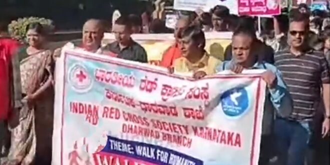 ಧಾರವಾಡ: ಧಾರವಾಡದ ಭಾರತೀಯ ರೆಡ್ ಕ್ರಾಸ್ ಸಂಸ್ಥೆ, ಕೆ.ಎಚ್.ಕಬ್ಬರ ತಾಂತ್ರಿಕ ಶಿಕ್ಷಣ ಸಂಸ್ಥೆ ವತಿಯಿಂದ “ವಿಶ್ವ ಶಾಂತಿ” ಎಂಬ ಹೆಸರಿನಡಿ ಜಾಗೃತಿ ಜಾಥಾ ಹಮ್ಮಿಕೊಳ್ಳಲಾಗಿತ್ತು.