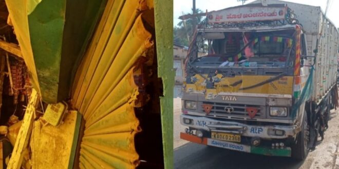 ಸವದತ್ತಿ ಕಡೆಯಿಂದ ಇಂದು ಬೆಳಗಿನಜಾವ 3 ಗಂಟೆ ಸುಮಾರಿಗೆ ಬಂದ ಕ್ಯಾಂಟರ್ ಏಕಾಏಕಿ ಅಂಗಡಿಗೆ ಗುದ್ದಿದೆ. ಅದೃಷ್ಟವಶಾತ್ ಈ ಘಟನೆಯಲ್ಲಿ ಯಾವುದೇ ಪ್ರಾಣಹಾನಿ ಸಂಭವಿಸಿಲ್ಲ.ಚಾಲಕನ ನಿಯಂತ್ರಣ ತಪ್ಪಿ ಈ ಅವಘಡ ಸಂಭವಿಸಿದೆ. ಘಟನಾ ಸ್ಥಳಕ್ಕೆ ಸಂಚಾರ ಠಾಣೆ ಪೊಲೀಸರು ಭೇಟಿ ನೀಡಿ ದೂರು ದಾಖಲಿಸಿಕೊಂಡಿದ್ದಾರೆ.