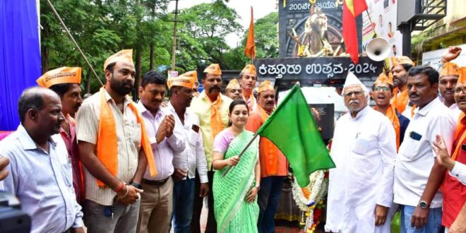 ಧಾರವಾಡ: ಕಿತ್ತೂರು ರಾಣಿ ಚೆನ್ನಮ್ಮ ಜಯಂತಿ ಅಂಗವಾಗಿ ಜಿಲ್ಲೆಗೆ ಇಂದು ಬೆಳಿಗ್ಗೆ ಆಗಮಿಸಿದ್ದ ಕಿತ್ತೂರು ರಾಣಿ ಚನ್ನಮ್ಮ ವಿಜಯ ಜ್ಯೋತಿ ಯಾತ್ರಾ ರಥವನ್ನು ಜಿಲ್ಲಾಧಿಕಾರಿ ದಿವ್ಯ ಪ್ರಭು ಅವರು ಡಿಸಿ ಕಚೇರಿ ಮುಂಭಾಗದಲ್ಲಿ ಸ್ವಾಗತಿಸಿ, ಪೂಜೆ ಸಲ್ಲಿಸಿದರು.
