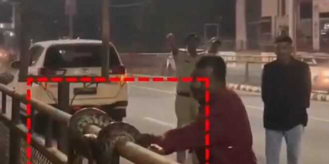 ಸುಮಾರು 10 ರಿಂದ 12 ಪೂಟ್ ಇರುವಂತ ಹೆಬ್ಬಾವು ಶನಿವಾರ ರಾತ್ರಿ ಬಿಆರ್ಟಿಎಸ್ ರಸ್ತೆಯಲ್ಲಿ ಸಂಚರಿಸುತ್ತಿತ್ತು, ಅದನ್ನು ನೋಡಿದ ಸುನೀಲ ಎಂಬ ಯುವಕ, ಬಸ್ ತಡೆದಿದ್ದಾನೆ. ಅಷ್ಟೇ ಅದೇ ರಸ್ತೆಯಲ್ಲಿ ಹೋಗುತ್ತಿದ್ದ ಡಿಸಿಪಿ ಮಹಲಿಂಗ ನಂದಗಾವಿ ಅವರನ್ನು ತಡೆದು ತೋರಿಸಿದ್ದಾನೆ. ಕೂಡಲೇ ಡಿಸಿಪಿ ನಂದಗಾವಿ ಅವರು ಎಲ್ಲ ವಾಹನವನ್ನು ತಡೆದು ಹಾವು ರಕ್ಷಕನನ್ನು ಕರೆಯಿಸಿ, ಹೆಬ್ಬಾವನ್ನು ರಕ್ಷಣೆ ಮಾಡಿಸಿದ್ದಾರೆ.