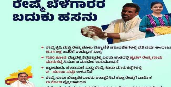 ರೇಷ್ಮೆ ಕೃಷಿ ಮತ್ತು ರೇಷ್ಮೆ ನೂಲು ಬಿಚ್ಚಾಣಿಕೆ ಚಟುವಟಿಕೆಗಳಲ್ಲಿ ಪ್ರತಿ ವರ್ಷ ಅಂದಾಜು 15.34 ಲಕ್ಷ ಜನರಿಗೆ ಉದ್ಯೋಗ ಭಾಗ್ಯ ಸಿಕ್ಕಿದೆ.