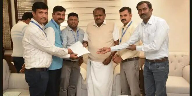 ಮುಖಂಡ ಮಂಗೋಟೆ ರುದ್ರೇಶ್ ಹಾಗೂ ಕಾರ್ಮಿಕ ಸಂಘದ ಅಧ್ಯಕ್ಷ ಜೆ. ಜಗದೀಶ್ ನೇತೃತ್ವದ ಕಾರ್ಮಿಕರ ನಿಯೋಗ ಈಚೆಗೆ ನವದೆಹಲಿಯಲ್ಲಿ ಕುಮಾರಸ್ವಾಮಿ ಮತ್ತು ಸಂಸದ ಬಿ.ವೈ. ರಾಘವೇಂದ್ರ ಅವರನ್ನು ಭೇಟಿ ಮಾಡಿ, ಮನವಿ ಸಲ್ಲಿಸಿದ್ದು, ಸಚಿವರು ಭರವಸೆ ನೀಡಿದ್ದಾರೆ ಎಂದು ಕಾರ್ಮಿಕರು ತಿಳಿಸಿದ್ದಾರೆ.