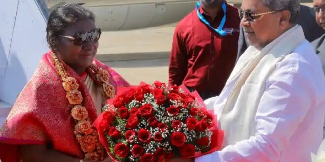 ಬೆಂಗಳೂರು: ಸಿಲಿಕಾನ್ ಸಿಟಿ ಬೆಂಗಳೂರಿಗೆ ನಿಮ್ಹಾನ್ಸ್ ಆಸ್ಪತ್ರೆಯಲ್ಲಿ ವಿವಿಧ ಸೌಲಭ್ಯಗಳನ್ನು ಲೋಕಾರ್ಪಣೆ ಮಾಡುವ ನಿಮಿತ್ತ ರಾಷ್ಟ್ರಪತಿ ದ್ರೌಪದಿ ಮುರ್ಮು ಅವರು ಆಗಮಿಸಿದ್ದಾರೆ. ರಾಷ್ಟ್ರಪತಿ ದ್ರೌಪದಿ ಮುರ್ಮುಗೆ ಮುಖ್ಯಮಂತ್ರಿ ಸಿದ್ದರಾಮಯ್ಯ,ಹಾಗೂ ಸಚಿವ ಶರಣ್ ಪ್ರಕಾಶ್ ಪಾಟೀಲ್,ಮುಖ್ಯ ಕಾರ್ಯದರ್ಶಿ ಶಾಲಿನಿ ರಜನೀಶ್,ಡಿಜಿ ಮತ್ತು ಐಜಿ ಅಲೋಕ್ ಮೋಹನ್, ಕಮಿಷನರ್ ದಯಾನಂದ್, ಬೆಂಗಳೂನಗರ ಡಿಸಿ ಜಗದೀಶ್ ಸ್ವಾಗತ ಮಾಡಿದ್ದಾರೆ.