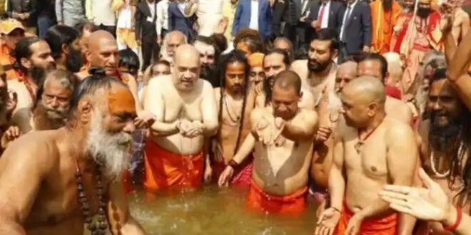 ತ್ರಿವೇಣಿ ಸಂಗಮಕ್ಕೆ ತೆರಳಿದ ಅಮಿತ್ ಶಾ, ನದಿಯಲ್ಲಿ ಪುಣ್ಯ ಸ್ನಾನ ಕೈಗೊಂಡರು. ಈ ವೇಳೆ ಸಿಎಂ ಯೋಗಿ ಆದಿತ್ಯನಾಥ್ ಸೇರಿದಂತೆ ಜುನಾ ಅಖಾಡದ ಮಹಾಮಂಡಲೇಶ್ವರ ಅವಧೇಶಾನಂದ ಸೇರಿದಂತೆ ಅನೇಕ ಸಂತರು ಅಮಿತ್ ಶಾ ಜೊತೆ ನದಿಯಲ್ಲಿ ಪುಣ್ಯ ಸ್ನಾನ ಮಾಡಿದರು
