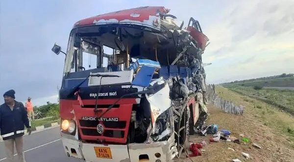 ಸಿರುಗುಪ್ಪ ತಾಲೂಕಿನ ಬೈರಾಪುರ ಕ್ರಾಸ್ ಬಳಿ ಭೀಕರ ರಸ್ತೆ ಅಪಘಾತ ಸಂಭವಿಸಿದ್ದು, ಕೆಎಸ್ಆರ್ಟಿಸಿ ಬಸ್ ನಿಂತಿದ್ದ ಲಾರಿಗೆ ಡಿಕ್ಕಿ ಹೊಡೆದ ಪರಿಣಾಮ ಇಬ್ಬರು ಪ್ರಯಾಣಿಕರು ಸಾವನ್ನಪ್ಪಿದ್ದಾರೆ. ರಾತ್ರಿ 11:30ರ ಸುಮಾರಿಗೆ ನಡೆದ ಈ ದುರಂತದಲ್ಲಿ ಇನ್ನೂ ನಾಲ್ವರು ಗಾಯಗೊಂಡಿದ್ದಾರೆ.ಅಪಘಾತದ ಸ್ಥಳಕ್ಕೆ ಧಾವಿಸಿದ ಸಿರಿಗೇರಿ ಪೊಲೀಸರು ರಕ್ಷಣಾ ಕಾರ್ಯಾಚರಣೆಯಲ್ಲಿ ತೊಡಗಿದ್ದರು. ಜಿಲ್ಲಾ ಪೊಲೀಸ್ ವರಿಷ್ಠಾಧಿಕಾರಿ ಡಾ. ಶೋಭಾರಾಣಿ ವಿಜೆ ಸ್ಥಳಕ್ಕೆ ಭೇಟಿ ನೀಡಿ ಪರಿಶೀಲನೆ ನಡೆಸಿ, ಬಸ್ ಚಾಲಕನ ವಿರುದ್ಧ ನಿರ್ಲಕ್ಷ್ಯದಿಂದ ವಾಹನ ಚಾಲನೆ ಮಾಡಿದ ಆರೋಪದಡಿ ಪ್ರಕರಣ ದಾಖಲಿಸಿದ್ದಾರೆ.