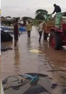 ಚಿತ್ತಾಪುರ ತಾಲೂಕಿನ ಹಲಕರ್ಟಿ ಗ್ರಾಮದಲ್ಲಿ ನೂರಾರು ರೈತರು ಹೆಸರು ಫಸಲು ರಾಶಿ ಮಾಡಿ ದರ್ಗಾ ಆವರಣದಲ್ಲಿ ಒಣಗಲು ಹಾಕಿದ್ದರು. ಆದರೆ, ಇಡೀ ರಾತ್ರಿ ಸುರಿದ ಧಾರಾಕಾರ ಮಳೆಗೆ ಪಕ್ಕದಲ್ಲಿದ್ದ ಬೃಹತ್ ಹಳ್ಳ ಉಕ್ಕಿ ಹರಿದು ದರ್ಗಾ ಆವರಣ ಸಂಪೂರ್ಣ ಜಲಾವೃತವಾಗಿದೆ. ಬೆಳೆ ನಷ್ಟದಿಂದ ಅನ್ನದಾತ ಬೇಸರಗೊಂಡಿದ್ದಾನೆ.ವರುಣಾರ್ಭಟಕ್ಕೆ ಬೆಳೆ ಹಾನಿಯಾಗಿ ರೈತರು ಕಂಗಾಲಾಗಿದ್ದು, ಪರಿಹಾರ ನೀಡುವಂತೆ ಸರ್ಕಾರಕ್ಕೆ ಮನವಿ ಮಾಡಿದ್ದಾರೆ.