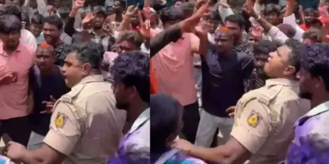 ಗಣೇಶ ವಿಸರ್ಜನೆ ವೇಳೆ ಪಿಎಸ್ ಐ ಮಸ್ತ್ ಡ್ಯಾನ್ಸ್ ಮಾಡಿರುವ ವಿಡಿಯೋ ವೈರಲ್ ಆಗಿದೆ. ರಾಯಚೂರಿನ ಹರಿಜನವಾಡ ಬಡಾವಣೆಯಲ್ಲಿ ಸ್ಥಾಪಿಸಿದ್ದ ಬೃಹತ್ ಗಣೇಶ ಮೂರ್ತಿ ವಿಸರ್ಜಯ ಮೆರವಣಿಗೆಯಲ್ಲಿ ಬಂದೋಬಸ್ತ್ ನಲ್ಲಿದ್ದ ಪಶ್ಚಿಮ ಠಾಣೆ ಪಿಎಸ್ ಐ ಮಂಜುನಾಥ್, ಯುವಕರೊಂದಿಗೆ ಡಿಜೆಗೆ ಸಖತ್ ಡ್ಯಾನ್ಸ್ ಮಾಡಿದ್ದಾರೆ.