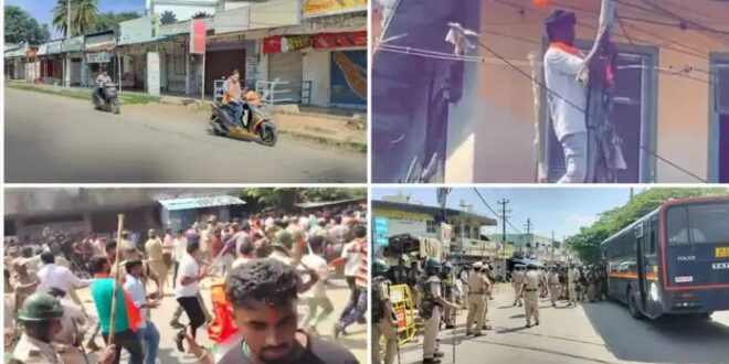 ಗಣೇಶ ವಿಸರ್ಜನಾ ಮೆರವಣಿಗೆ ಮೇಲೆ ಕಿಡಿಗೇಡಿಗಳು ಕಲ್ಲು ತೂರಾಟ ನಡೆಸಿದ್ದ ಮದ್ದೂರು ಉದ್ವಿಗ್ನಗೊಂಡಿದೆ. ಘಟನೆ ಖಂಡಿಸಿ ಸಾಗರೋಪಾದಿಯಲ್ಲಿ ಸೇರಿದ್ದ ಜನ ಕೋಮು ಗಲಭೆಗೆ ಅವಕಾಶ ಮಾಡಿಕೊಡುವ ಸಾಧ್ಯತೆ ಕಂಡು ಬಂದ ಹಿನ್ನೆಲೆಯಲ್ಲಿ ಪೊಲೀಸರು ಲಘು ಲಾಠಿ ಪ್ರಹಾರ ನಡೆಸಿ ಪರಿಸ್ಥಿತಿಯನ್ನು ನಿಯಂತ್ರಣಕ್ಕೆ ತಂದಿದ್ದಾರೆ.ಹೀಗಾಗಿ ಸ್ಥಳದಲ್ಲಿ ನಿಷೇದಾಜ್ಞೆ ಜಾರಿಗೆ ತರಲಾಗಿತ್ತು. ಆದರೂ ಇಂದು ಬೆಳಗ್ಗೆ 10 ಗಂಟೆ ಸುಮಾರಿನಲ್ಲಿ ಘಟನೆ ನಡೆದ ಸ್ಥಳದಲ್ಲಿ ಜಮಾಯಿಸಿದ ಜನರ ಗುಂಪು ಕೆಲ ರಸ್ತೆಗಳಲ್ಲಿ ಅಳವಡಿಸಲಾಗಿದ್ದ ಅನ್ಯ ಕೋಮಿನ ಬಾವುಟಗಳನ್ನು ತೆರವುಗೊಳಿಸಿ ತಮ ಆಕ್ರೋಶ ಹೊರಹಾಕಿದರು.