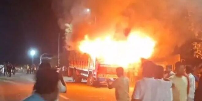 ರಾಯಬಾಗ ತಾಲೂಕಿನ ಕುಡಚಿ ಪಟ್ಟಣದಿಂದ ಹೈದರಾಬಾದ್ ಗೆ ಲಾರಿ ತುಂಬಿಕೊಂಡು ಗೋಮಾಂಸ ಸಾಗಿಸುತ್ತಿರುವ ಮಾಹಿತಿ ಪಡೆದ ಸಾರ್ವಜನಿಕರು ಐನಾಪುರ ಗ್ರಾಮದ ಉಗಾರ ರಸ್ತೆಯ ಶ್ರೀ ಸಿದ್ದೇಶ್ವರ ಗುಡಿ ಹತ್ತಿರ ರಾತ್ರಿ 10 ಗಂಟೆ ಸುಮಾರಿಗೆ ಲಾರಿ ತಡೆ ಹಿಡಿದಿದ್ದಾರೆ.ಚಾಲಕನನ್ನು ವಿಚಾರಿಸಿ ನಂತರ ಲಾರಿಯನ್ನು ಪರಿಶೀಲಿಸಿದಾಗ ಅಪಾರ ಪ್ರಮಾಣದಲ್ಲಿ ಗೋಮಾಸ ಇರುವುದು ಕಂಡುಬಂದಿದೆ. ಆಗ ರೊಚ್ಚಿಗೆದ್ದ ಸಾರ್ವಜನಿಕರು ಲಾರಿಗೆ ಬೆಂಕಿ ಹಚ್ಚಿದ್ದಾರೆ.ಪೊಲೀಸರು ಸ್ಥಳಕ್ಕೆ ಬರುವಷ್ಟರಲ್ಲಿ ಲಾರಿ ಬೆಂಕಿಗಾಹುತಿಯಾಗಿತ್ತು. ಲಾರಿಯಲ್ಲಿ ಸುಮಾರು ಐದು ಟನ್ ಗೂ ಹೆಚ್ಚು ಗೋಮಾಂಸ ಇತ್ತು ಎನ್ನಲಾಗುತ್ತಿದೆ. ಕಾಗವಾಡ ಪೊಲೀಸ್ ಪಿಎಸ್ ಐ ರಾಘವೇಂದ್ರ ಖೋತ ಹಾಗೂ ಸಿಬ್ಬಂದಿ ಭೇಟಿ ನೀಡಿ ಪರಿಶೀಲನೆ ನಡೆಸಿದರು.