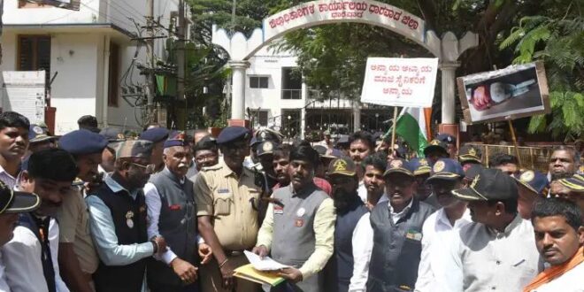 ಸೈನಿಕ ಮೆಸ್ ಮಾಲೀಕ ಮಾಜಿ ಸೈನಿಕ ರಾಮಪ್ಪ ನಿಪ್ಪಾಣಿ ಅವರ ಮೇಲೆ ಉಪನಗರ ಠಾಣೆ ಇನ್ಸ್ಪೆಕ್ಟರ್ ಹಲ್ಲೆ ನಡೆಸಿದ್ದು, ಅವರ ವಿರುದ್ಧ ಶಿಸ್ತುಕ್ರಮ ಜರುಗಿಸಬೇಕು ಎಂದು ಆಗ್ರಹಿಸಿ ಮಾಜಿ ಸೈನಿಕರ ಸಂಘ, ಕರ್ನಾಟಕ ಕಾನೂನು ವಿದ್ಯಾರ್ಥಿಗಳ ಸಂಘದವರು ಸೋಮವಾರ ಪ್ರತಿಭಟನೆ ನಡೆಸಿದರು.ಗಾಯಾಳು ರಾಮಪ್ಪ ಅವರನ್ನು ಆಸ್ಪತ್ರೆಗೆ ಕರದೊಯ್ಯುವಂತೆ ಅವರ ಪತ್ನಿ ಕೇಳಿದರೂ ಸ್ಪಂದಿಸಿಲ್ಲ. ಮೆಸ್ ಬಾಗಿಲು ಮುಚ್ಚಿ ಹಿಂಸೆ ನೀಡಿದ್ದಾರೆ ಎಂದು ದೂರಿದರು.ಬೆಳಗಾವಿ ಜಿಲ್ಲೆ ಮಾಜಿ ಸೈನಿಕ ಸಂಘಟನೆಗಳ ಮಹಾಸಂಘದ ಅಧ್ಯಕ್ಷ ಜಗದಯ್ಯ ಪೂಜೇರಿ, ಪ್ರಧಾನ ಕಾರ್ಯದರ್ಶಿ ಶಿವಬಸಪ್ಪ ಕಾಡನ್ನವರ, ಖಜಾಂಚಿ ಸಂತೋಷ ಹಿರೇಮಠ, ಗೌರವಾಧ್ಯಕ್ಷ ರಮೇಶ ಚೌಗಲಾ, ಸಿಖಂಧರ್ ನವಲೂರು ಇದ್ದರು.