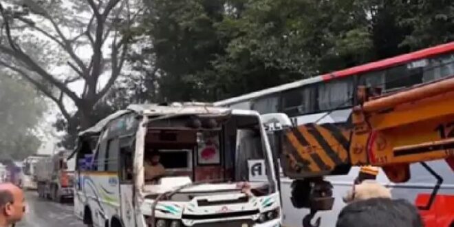 ಚಿಕ್ಕಮಗಳೂರಲ್ಲಿ ಭೀಕರ ಅಪಘಾತ ಸಂಭವಿಸಿದ್ದು, ಪ್ರವಾಸಕ್ಕೆ ಬಂದಿದ್ದ ವಿದ್ಯಾರ್ಥಿಗಳಿದ್ದ ಖಾಸಗಿ ಬಸ್ ಪಲ್ಟಿಯಾಗಿದೆ. ಶೃಂಗೇರಿ ತಾಲೂಕಿನ ಕಾವಡಿಯಲ್ಲಿ ಈ ಒಂದು ಅಪಘಾತ ಸಂಭವಿಸಿದೆ.ಅಪಘಾತದಲ್ಲಿ 11 ವಿದ್ಯಾರ್ಥಿಗಳಿಗೆ ಗಂಭೀರವಾದ ಗಾಯಗಳಾಗಿದ್ದು, ಐವರು ವಿದ್ಯಾರ್ಥಿಗಳ ಸ್ಥಿತಿ ಚಿಂತಾಜನಕವಾಗಿದೆ. ಗಾಯಾಳು ವಿದ್ಯಾರ್ಥಿಗಳನ್ನು ತಕ್ಷಣ ಮಣಿಪಾಲ ಆಸ್ಪತ್ರೆಗೆ ದಾಖಲಿಸಿ ಚಿಕಿತ್ಸೆ ನೀಡಲಾಗುತ್ತಿದೆ. ಶೃಂಗೇರಿ ಪ್ರವಾಸಕ್ಕೆ ವಿದ್ಯಾರ್ಥಿಗಳ ತಂಡ ಬಂದಿತ್ತು. ಚಿತ್ರದುರ್ಗದ ವಾಸವಿ ಕಾಲೇಜಿನ ವಿದ್ಯಾರ್ಥಿಗಳು ಪ್ರವಾಸಕ್ಕೆ ಬಂದಾಗ ಈ ಅಪಘಾತ ಸಂಭವಿಸಿದೆ.ಬಸ್ ನಲ್ಲಿ ಸುಮಾರು 25ಕ್ಕೂ ಹೆಚ್ಚು ವಿದ್ಯಾರ್ಥಿಗಳು ಇದ್ದರು ಎಂದು ತಿಳಿದು ಬಂದಿದೆ.
