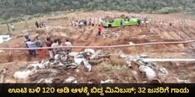 ತಮಿಳುನಾಡಿನ ಊಟಿ ಬಳಿ 120 ಅಡಿ ಕಂದಕಕ್ಕೆ ಮಿನಿ ಬಸ್ ಬಿದ್ದು ಅಪಘಾತಕ್ಕೀಡಾಗಿದೆ. ಈ ಅಪಘಾತದಲ್ಲಿ 32 ಜನರು ಗಾಯಗೊಂಡಿದ್ದಾರೆ. ಅವರಲ್ಲಿ 3 ಜನರ ಸ್ಥಿತಿ ಗಂಭೀರವಾಗಿದೆ ಎಂದು ವರದಿಯಾಗಿದೆ. ಈ ಘಟನೆಗೆ ಸಂಬಂಧಿಸಿದಂತೆ ಪೊಲೀಸರು ಪ್ರಕರಣ ದಾಖಲಿಸಿಕೊಂಡು ಸಕ್ರಿಯ ತನಿಖೆ ನಡೆಸುತ್ತಿದ್ದಾರೆ.ನೀಲಗಿರಿ ಜಿಲ್ಲೆಯ ಉಡಗೈನ ಕಲ್ಲಕೊರೈ ಹಾಡ ಬಳಿ ಪ್ರಯಾಣಿಕರನ್ನು ಕರೆದೊಯ್ಯುತ್ತಿದ್ದ ಮಿನಿ ಬಸ್ ಚಾಲಕನ ನಿಯಂತ್ರಣ ತಪ್ಪಿ 120 ಅಡಿ ಆಳಕ್ಕೆ ಉರುಳಿ ಬಿದ್ದು ಅಪಘಾತ ಸಂಭವಿಸಿದೆ. ಅಪಘಾತಕ್ಕೀಡಾದವರು ಆಸ್ಪತ್ರೆಯಲ್ಲಿ ಚಿಕಿತ್ಸೆ ಪಡೆಯುತ್ತಿದ್ದಾರೆ.ತಕ್ಷಣ ಸ್ಥಳಕ್ಕೆ ಧಾವಿಸಿದ ಪೊಲೀಸರು, ಆಂಬ್ಯುಲೆನ್ಸ್ ಮೂಲಕ ಗಾಯಾಳುಗಳನ್ನು ಊಟಿ ಸರ್ಕಾರಿ ವೈದ್ಯಕೀಯ ಕಾಲೇಜು ಆಸ್ಪತ್ರೆಗೆ ಕಳುಹಿಸಿದರು. ಪ್ರಸ್ತುತ ಅವರಿಗೆ ಅಲ್ಲಿ ಪ್ರಾಥಮಿಕ ಚಿಕಿತ್ಸೆ ನೀಡಲಾಗುತ್ತಿದೆ. ಅವರಲ್ಲಿ 3 ಮಂದಿ ಗಂಭೀರವಾಗಿ ಗಾಯಗೊಂಡಿದ್ದು, ಅವರನ್ನು ತೀವ್ರ ನಿಗಾ ಘಟಕದಲ್ಲಿ ದಾಖಲಿಸಲಾಗಿದೆ. ಈ ಘಟನೆಗೆ ಸಂಬಂಧಿಸಿದಂತೆ ಪೊಲೀಸರು ಪ್ರಕರಣ ದಾಖಲಿಸಿಕೊಂಡಿದ್ದು, ಅಪಘಾತದ ಕಾರಣದ ಬಗ್ಗೆ ತನಿಖೆ ನಡೆಸುತ್ತಿದ್ದಾರೆ.