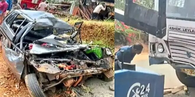 ಕೇರಳ ಜಿಲ್ಲೆಯ ಮೋನಿಪಳ್ಳಿ ಸಮೀಪದ ಎಂಸಿ ರಸ್ತೆಯಲ್ಲಿ ಸೋಮವಾರ ಸಂಭವಿಸಿದ ಭೀಕರ ರಸ್ತೆ ಅಪಘಾತದಲ್ಲಿ ಒಂದೇ ಕುಟುಂಬದ ಮೂವರು ದಾರುಣವಾಗಿ ಸಾವನ್ನಪ್ಪಿದ ಘಟನೆ ಸಂಭವಿಸಿದೆ.ಮೃತರನ್ನು ನೀಂದೂರು ನಿವಾಸಿಗಳಾದ ಸುರೇಶ್ (52), ಅವರ ಪತ್ನಿ ಅಂಬಿಲಿ (48) ಮತ್ತು ಅವರ ಮೊಮ್ಮಗ ಅರ್ಜಿತ್ (7) ಎಂದು ಗುರುತಿಸಲಾಗಿದೆ.ಮೃತರ ಕುಟುಂಬದವರು ಎರ್ನಾಕುಲಂ ಜಿಲ್ಲೆಯ ಸುಪ್ರಸಿದ್ಧ ತಿರುವೈರಾನಿಕುಲಂ ಮಹಾದೇವ ದೇವಸ್ಥಾನಕ್ಕೆ ಭೇಟಿ ನೀಡಿ ಪೂಜೆ ಸಲ್ಲಿಸಿ ತಮ್ಮ ಮನೆಗೆ ಮರಳುತ್ತಿದ್ದರು. ಈ ವೇಳೆ ಚಾಲಕನ ನಿಯಂತ್ರಣ ತಪ್ಪಿದ ಕಾರು ಎದುರಿನಿಂದ ಬರುತ್ತಿದ್ದ ಕೆಎಸ್ಆರ್ಟಿಸಿ ಬಸ್ಗೆ ವೇಗವಾಗಿ ಡಿಕ್ಕಿ ಹೊಡೆದ ಪರಿಣಾಮ ಈ ಅಪಘಾತ ಸಂಭವಿಸಿದೆ. ಕಾರಿನಲ್ಲಿದ್ದ ಇತರ ಮೂವರು ಪ್ರಯಾಣಿಕರು ತೀವ್ರವಾಗಿ ಗಾಯಗೊಂಡಿದ್ದು, ಅವರನ್ನು ಹೆಚ್ಚಿನ ಚಿಕಿತ್ಸೆಗಾಗಿ ಕೊಟ್ಟಾಯಂ ವೈದ್ಯಕೀಯ ಕಾಲೇಜು ಆಸ್ಪತ್ರೆಗೆ ದಾಖಲಿಸಲಾಗಿದೆ. ಅವರಲ್ಲಿ ಒಬ್ಬರ ಸ್ಥಿತಿ ಗಂಭೀರವಾಗಿದೆ ಎಂದು ತಿಳಿದುಬಂದಿದೆ. ಘಟನೆಯ ಸಂಬಂಧ ಕುರವಿಲಂಗಡ್ ಪೊಲೀಸರು ಪ್ರಕರಣ ದಾಖಲಿಸಿಕೊಂಡು ತನಿಖೆ ನಡೆಸುತ್ತಿದ್ದಾರೆ.