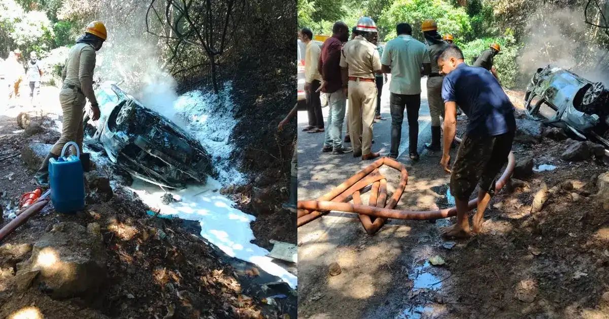 ಶಿವಮೊಗ್ಗ : ಚಲಿಸುತ್ತಿದ್ದ ಕಾರಿನಲ್ಲಿ ಏಕಾಏಕಿ ಬೆಂಕಿ ಕಾಣಿಸಿಕೊಂಡು ಕಾರು ಸಂಪೂರ್ಣವಾಗಿ ಸುಟ್ಟು ಹೋಗಿದ್ದು, ಕಾರು ಚಾಲಕ ಪ್ರಾಣಾಪಾಯದಿಂದ ಪಾರಾದ ಘಟನೆ ತೀರ್ಥಹಳ್ಳಿಯ ನಾಲೂರು ಕೊಳಿಗೆ ಬಳಿ ನಡೆದಿದೆ. ಉಡುಪಿಯಿಂದ ಸೊರಬಕ್ಕೆ ಡಸ್ಟರ್ ಕಾರು ತೆರಳುತ್ತಿತ್ತು. ತೀರ್ಥಹಳ್ಳಿ ತಾಲೂಕಿನ ನಾಲೂರು ಕೊಳಿಗೆ ಬಳಿ ಬರುತ್ತಿದ್ದಂತೆ ಡಸ್ಟರ್ ಕಾರಿನನ ಇಂಜಿನಲ್ಲಿ ದಿಢೀರ್ ಬೆಂಕಿ ಕಾಣಿಸಿಕೊಂಡಿದೆ. ಪರಿಣಾಮ ಕಾರು ಚಾಲಕನ ನಿಯಂತ್ರಣ ತಪ್ಪಿ ಪಲ್ಟಿಯಾಗಿ ಗುಡ್ಡಕ್ಕೆ ಢಿಕ್ಕಿ ಹೊಡೆದಿದೆ. ಕಾರು ನೋಡ ನೋಡುತ್ತಿದ್ದಂತೆಯೇ ಸಂಪೂರ್ಣವಾಗಿ ಹೊತ್ತಿ ಉರಿದಿದೆ. ಘಟನೆ ಸಂಭವಿಸಿದಾಗ ಕಾರಿನಲ್ಲಿ ಚಾಲಕ ಒಬ್ಬರೇ ಇದ್ದು, ಕೂಡಲೇ ಹೊರಬಂದಿದ್ದರಿಂದ ಪ್ರಾಣಾಪಾಯದಿಂದ ಪಾರಾಗಿದ್ದಾರೆ. ಚಾಲಕನನ್ನ ಸೊರಬದ ಸುಹೇಲ್ ಎಂದು ಗುರುತಿಸಲಾಗಿದೆ. ಸುದ್ದಿ ತಿಳಿದ ಕೂಡಲೇ ಸ್ಥಳಕ್ಕೆ ಆಗಮಿಸಿದ ಅಗ್ನಿಶಾಮಕ ದಳದ ಸಿಬ್ಬಂದಿ ಬೆಂಕಿಯನ್ನು ನಂದಿಸುವಲ್ಲಿ ಯಶಸ್ವಿಯಾಗಿದ್ದಾರೆ. ಆಗುಂಬೆ ಪೊಲೀಸ್ ಠಾಣಾ ವ್ಯಾಪ್ತಿಯಲ್ಲಿ ಈ ಘಟನೆ ನಡೆದಿದೆ.