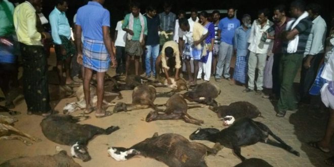ತಡ ರಾರ್ತಿ ಅಪರಿಚಿತ ವಾಹನ ಡಿಕ್ಕಿ ಹೊಡೆದ ಪರಿಣಾಮ 35 ಕುರಿಗಳು ಸಾವನ್ನಪ್ಪಿದ ಘಟನೆಹಿರಿಯೂರು ನಗರದ ವಿವಿ ಕ್ರಾಸದ ಬಳಿ ನಡೆದಿದೆ.ಶಿರಾ ತಾಲ್ಲೂಕಿನ ಗೌಡಗೇರೆ ಗೊಲ್ಲರಹಟ್ಟಿ ಶಿವಣ್ಣ ,ಕೃಷ್ಣಪ್ಪ ಅವರಿಗೆ ಸೇರಿದ ಕುರಿಗಳಾಗಿವೆ. ಲಕ್ಷಾಂತರ ಮೌಲ್ಯದ ಕುರಿಗಳು ಸಾವನ್ನಪ್ಪಿದ ಹಿನ್ನೆಲೆಯಲ್ಲಿ ಕುರಿಗಾರರಿಗೆ ದೊಡ್ಡ ಪ್ರಮಾಣದ ನಷ್ಟವಾಗಿದೆ. ಅಪಘಾತ ವೆಸಗಿದವರನ್ನು ಬಂಧಿಸಿ ಸೂಕ್ತ ಪರಿಹಾರಕ್ಕಾಗಿ ಕುರಿಗಾರರು ಕಣ್ಣಿರು ಹಾಕಿದ್ದಾರೆ. ಈ ಕುರಿತು ಹಿರಿಯೂರು ನಗರ ಠಾಣೆಯಲ್ಲಿ ಪ್ರಕರಣ ದಾಖಲಾಗಿದೆ.