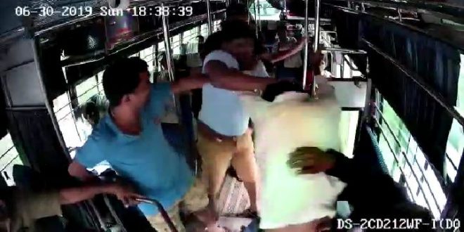ಉಡುಪಿ : ಉಡುಪಿಯಿಂದ ಶಿವಮೊಗ್ಗ ಕ್ಕೆ ತೆರಳುತ್ತಿದ್ದ ಬಸ್ಸೊಂದನ್ನ ಗುಂಪೊಂದು ಅಡ್ಡಗಟ್ಟಿ ಕಂಡಕ್ಟರ್ ಮೇಲೆ ಹಲ್ಲೆ ನಡೆಸಿ ಕಂಡಕ್ಟರ್ ಬಳಿಯಿದ್ದ ಸಾವಿರಾರು ರೂಪಾಯಿ ಹಣವನ್ನು ದೋಚಿದ ಘಟನೆ ಅಂಗುಂಬೆ -ತೀರ್ಥಹಳ್ಳಿ ಬಳಿಯ ಮಂಡಗದ್ದೆ ಬಳಿ ನಡೆದಿದೆ.ನಿಶಾನ್ ಟ್ರಾವೆಲ್ಸ್ ಎನ್ನುವ ಬಸ್ಸು ಮಧ್ಯಾಹ್ನ ೩.೧೫ ಕ್ಕೆ ಉಡುಪಿಯಿಂದ ಹೊರಟ್ಟಿತ್ತು.ಹೆಬ್ರಿ ಸೀತಾನದಿ ಬಳಿ ಕಾರೊಂದರಲ್ಲಿ ಬಂದಿದ್ದ ಗುಂಪು ಸ್ಥಳೀಯರಿಗೆ ಹಲ್ಲೆ ನಡೆಸುತ್ತಿದ್ದ ನ್ನು ಕಂಡು ಚಾಲಕ ಬಸ್ಸು ನಿಲ್ಲಿಸಿದ್ದಾನೆ.ಈ ಸಂಧರ್ಭದಲ್ಲಿ ಕಂಡಕ್ಟರ್ ಗಣೇಶ್ ಎನ್ನುವವರು ಹಲ್ಲೆ ನಡೆಸುತ್ತಿದ್ದವರ ಮಧ್ಯ ಪ್ರವೇಶಿಸಿ ಗಲಾಟೆ ನಿಲ್ಲಿಸಿದ್ದಾರೆ.ಇದರಿಂದ ಅಕ್ರೋಶಗೊಂಡ ಗುಂಪು ಎರಡು ಕಾರುಗಳಲ್ಲಿ ಬಸ್ಸನ್ನು ಹಿಂಬಾಲಿಸಿಕೊಂಡು ಬಂದಿದ್ದಾರೆ. ಅಂಗುಂಬೆ ಬಳಿ ಮಂಡಗದ್ದೆ ಅರಣ್ಯ ಪ್ರದೇಶಕ್ಕೆ ಬರುತ್ತಿದ್ದಂತೆ ಬಸ್ಸು ಬರುತ್ತಿದ್ದಂತೆ ಪಾನಮತ್ತರಾಗಿದ್ದ ಗುಂಪು ಬಸ್ಸು ಹತ್ತಿಕಂಡಕ್ಟರ್ ಗಣೇಶ್ ಗೆ ಏಕಾಏಕಿ ಹಲ್ಲೆ ಮಾಡಿದ್ದಾರೆ.ಬಸ್ಸಿನಿಂದ ಕೆಳ ಹಾಕಿ ಕಾಲಿನಿಂದ ಒದ್ದು ಜೀವ ಬೆದರಿಕೆ ಹಾಕಿ ಅತನಲ್ಲಿದ್ದ ಸುಮಾರು ೨೦ ಸಾವಿರಕ್ಕೂ ಹೆಚ್ಚು ಹಣವನ್ನು ಕಿತ್ತುಕೊಂಡು ಪರಾರಿಯಾಗಿದ್ದಾರೆ.ಭಾನುವಾರವಾದ ಕಾರಣ ಬಸ್ಸಿನಲ್ಲಿ ಪ್ರಯಾಣಿಕರ ಸಂಖ್ಯೆಯೂ ವಿರಳವಾಗಿತ್ತು.ಪಾಣಮತ್ತರಾಗಿದ್ದ ಗುಂಪು ಪ್ರಯಾಣಿಕರಿಗೂ ಬೆದರಿಕೆ ಹಾಕಿದ್ದಾರೆ ಎನ್ನಲಾಗಿದೆ.ಘಟನೆಯ ಎಲ್ಲಾ ದೃಶ್ಯಗಳು ಬಸ್ಸಿನಲ್ಲಿದ್ದ ಸಿಸಿಟಿವಿ ಯಲ್ಲಿ ದಾಖಲಾಗಿದೆ.ಅರೋಪಿಗಳು ಉಡುಪಿಯ ಪರ್ಕಳ ಮೂಲದವರು ಎನ್ನಲಾಗಿದೆ.