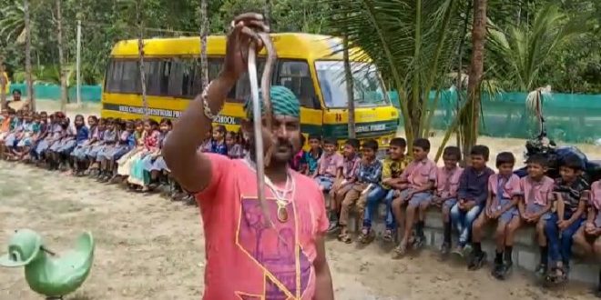 ಮಂಡ್ಯ: ಮಣಿಗನಹಳ್ಳಿಯ ಶ್ರೀ ಚಾಮುಂಡೇಶ್ವರಿ ಪೂರ್ವ ಪ್ರಾಥಮಿಕ ಶಾಲೆಯಲ್ಲಿ ಉರಗತಜ್ಞ ಸ್ನೇಕ್ ಮುನ್ನಾ ಅವರಿಂದ ಹಾವುಗಳ ಪ್ರದರ್ಶನ ಮಾಡಲಾಯಿತು. ಮಂಡ್ಯ ಜಿಲ್ಲೆ ಮಂಡ್ಯ ಪಟ್ಟಣದ ಕೆ.ಆರ್. ಪೇಟೆಯಲ್ಲಿ ಪ್ರಕೃತಿಯ ಸಮತೋಲನದಲ್ಲಿ ನಿರ್ಣಾಯಕ ಪಾತ್ರ ವಹಿಸಿರುವ ಹಾವುಗಳು ರೈತನ ಮಿತ್ರನಾಗಿವೆ. ರೈತ ಕಷ್ಟಪಟ್ಟು ಬೆಳೆದ ಬೆಳೆಗಳನ್ನು ಹಾಳುಮಾಡುವ ತೋಡಗಳು, ಇಲಿಗಳು ಮತ್ತು ಕ್ರಿಮಿಕೀಟಗಳನ್ನು ತಿಂದುಹಾಕುವ ಹಾವುಗಳನ್ನು ಹೊಡೆದು ಸಾಯಿಸದೇ ಅವುಗಳ ಪಾಡಿಗೆ ಅವು ಜೀವನ ನಡೆಸಲು ಅನುವು ಮಾಡಿಕೊಡಬೇಕು. ಹಾವುಗಳನ್ನು ಹೊಡೆದು ಸಾಯಿಸಬಾರದು ಎಂದು ಶಾಲೆಯ ಮುಖ್ಯ ಶಿಕ್ಷಕ ವಿಶ್ವನಾಥ ಮನವಿ ಮಾಡಿದರು. ವಿವಿಧ ಬಗೆಯ ಹಸಿರುಹಾವು, ಕಟ್ಟುಹಾವು, ಕೇರೆಹಾವು, ಉರಿಮಂಡಲದ ಹಾವು, ನಾಮಧಾರಿಹಾವು, ನಾಗರಹಾವು ಸೇರಿದಂತೆ ವಿವಿಧ ಹಾವುಗಳ ಬಗ್ಗೆ ಮಕ್ಕಳಿಗೆ ವಿವರಿಸಲಾಯಿತು… ಕೇರೆ ಹಾವು ಮತ್ತು ಹಸಿರುಹಾವನ್ನು ಮುಟ್ಟಿ ಸಂಭ್ರಮಿಸಿದ ಮಕ್ಕಳು ಸ್ನೇಕ್ ಮುನ್ನಾ ಅವರ ಪರಿಸರ ಕಾಳಜಿ ಹಾಗೂ ಹಾವುಗಳ ಸಂರಕ್ಷಣಾ ಕೆಲಸವನ್ನು ಶ್ಲಾಘಿಸಿದರು…ಶಾಲೆಯ ಅಧ್ಯಕ್ಷ ಡಾ.ದಿನೇಶ್, ಜಿಲ್ಲಾ ಗ್ರಂಥಾಲಯ ಪ್ರಾಧಿಕಾರದ ಸದಸ್ಯ ಕೆ.ಆರ್.ನೀಲಕಂಠ, ಚೇತನ್ ಕುಮಾರ್, ಮಕ್ಕಳ ಪೋಷಕರು ಮತ್ತಿತರರು ಹಾವುಗಳ ಪ್ರದರ್ಶನದಲ್ಲಿ ಭಾಗವಹಿಸಿದ್ದರು.