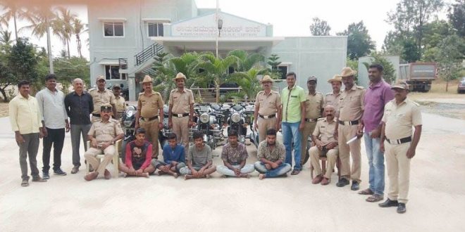 ಕೋಲಾರ: ಕೋಲಾರದ ಕೆಜಿಎಫ್ ಪೊಲೀಸರು ಜಿಲ್ಲೆಯ ಕಾಮಸಮುದ್ರಂ ಪೊಲೀಸರು ಭರ್ಜರಿ ಕಾರ್ಯಾಚರಣೆ ನಡೆಸಿ ಅಂತರರಾಜ್ಯ ದ್ವಿಚಕ್ರ ವಾಹನ ಕಳ್ಳರನ್ನು ಬಂಧಿಸುವಲ್ಲಿ ಯಶಸ್ವಿಯಾಗಿದ್ದಾರೆ.ಬಂಧಿತ ಐವರು ತಮಿಳುನಾಡು ಮೂಲದವರಾಗಿದ್ದು, ನದೀಂ, ಮುನೀರ್, ಶ್ರೀಧರ್, ನದೀಂ ಹಾಗೂ ಜೈಪ್ರಕಾಶ್ ಎಂದು ಗುರುತಿಸಲಾಗಿದೆ.ಐವರು ಅಂತರರಾಜ್ಯ ದ್ವಿಚಕ್ರ ವಾಹನ ಚೋರರನ್ನು ಬಂಧಿಸಲಾಗಿದ್ದು, ಬಂಧಿತರಿಂದ 20 ಲಕ್ಷ ರುಪಾಯಿ ಮೌಲ್ಯದ 15 ಬೈಕ್ ಗಳು ವಶಕ್ಕೆ ಪಡೆಯಲಾಗಿದೆ.- ಕರ್ನಾಟಕದ ಕೋಲಾರ, ಬೆಂಗಳೂರು ಜಿಲ್ಲೆಗಳಲ್ಲಿ ಹಾಗೂ ತಮಿಳುನಾಡಿನಲ್ಲಿ ಬೈಕ್ ಗಳನ್ನ ಕಳುವು ಮಾಡಿದ್ದರು.ಬಂಧಿತರು ಯಥೇಚ್ಛವಾಗಿ ಬುಲೆಟ್ ಸೇರಿದಂತೆ ಬೆಲೆ ಬಾಳುವ ಬೈಕ್ ಗಳನ್ನೆ ಟಾರ್ಗೆಟ್ ಮಾಡಿ ಕಳುವು ಮಾಡುತ್ತಿದ್ದರು ಎನ್ನಲಾಗಿದೆ.
