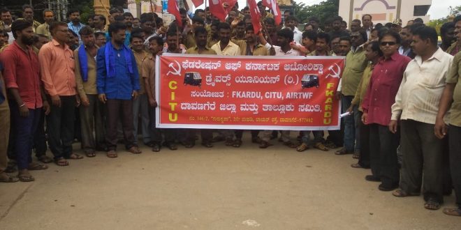 ದಾವಣಗೆರೆ; ಕೇಂದ್ರ ಸರ್ಕಾರದ ಮೋಟಾರು ವಾಹನ ಕಾಯ್ದೆಯನ್ನು ವಿರೋಧಿಸಿ ದಾವಣಗೆರೆಯಲ್ಲಿಂದು ಫೆಡರೇಶನ್ ಆಪ್ ಕರ್ನಾಟಕ ಆಟೋ ರಿಕ್ಷಾ ಸಮಿತಿಯವತಿಯಿಂದ ಪ್ರತಿಭಟನೆ ನಡೆಸಲಾಯಿತು.ದಾವಣಗೆರೆಯ ಜಯದೇವ ವೃತ್ತದಲ್ಲಿ ಆಟೋ ಚಾಲಕರು ಕೇಂದ್ರ ಸರ್ಕಾರದ ವಿರುದ್ಧ ಘೋಷಣೆ ಕೂಗಿ ಪ್ರತಿಭಟಿಸಿದರು.ಬಳಿಕ ಪ್ರತಿಭಟನಾಕಾರರು ಎಸಿ ಕಚೇರಿಗೆ ತೆರಳಿ ಈ ಕಾಯ್ದೆಯು ಚಾಲಕರಿಗೆ ಮಾರಕವಾಗಿದೆ. ಹೀಗಾಗಿ ಆಟೋ ಚಾಲಕರು ಈ ಕಾಯ್ದೆಯನ್ನು ವಿರೋಧಿಸುತ್ತೇವೆ ಎಂದು ಆಕ್ರೋಶ ವ್ಯಕ್ತಪಡಿಸಿದರು.ಮನವಿ ಸಲ್ಲಿಸಿದರು.