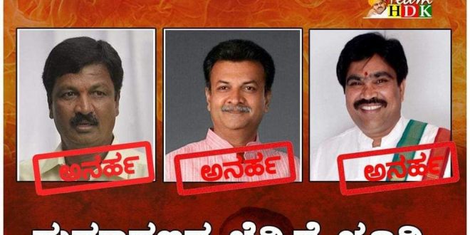 ಬೆಂಗಳೂರು: ಮೂವರು ಶಾಸಕರು ವಿಧಾನಸಭೆಯ ಈ ಅವಧಿ ಮುಗಿಯುವವರೆಗೂ ಅನರ್ಹರು ಎಂದು ಸ್ಪೀಕರ್ ರಮೇಶ್ ಕುಮಾರ್ ಅವರು ಪತ್ರಿಕಾಗೋಷ್ಠಿಯಲ್ಲಿ ಸ್ಪಷ್ಟಪಡಿಸಿದ್ದಾರೆ.ಸರ್ಕಾರ ಬಿದ್ದು ಹೋಗುತ್ತದೆ ಎಂಬುದು ಸ್ಪಷ್ವವಾದ ಕ್ಷಣದಿಂದ ಇದ್ದ ಕುತೂಹಲಗಳು ಎರಡು. ಒಂದು, ಸ್ಪೀಕರ್ ಅವರ ನಡೆ ಏನಾಗಿರುತ್ತದೆ ಎಂಬುದು, ಅಂದರೆ ಯಾವ್ಯಾವ ಶಾಸಕರನ್ನು ಅನರ್ಹಗೊಳಿಸುತ್ತಾರೆ ಎಂಬ ವಿಚಾರ. ಎರಡನೆಯದ್ದು ಯಡಿಯೂರಪ್ಪನವರು ಕೂಡಲೇ ಮುಖ್ಯಮಂತ್ರಿಯಾಗುತ್ತಾರಾ ಇಲ್ಲವಾ ಎಂಬುದುಇದೀಗ ಮೊದಲನೆಯ ವಿಚಾರಕ್ಕೆ ಪಾಕ್ಷಿಕವಾಗಿ ತೆರೆ ಬಿದ್ದಿದೆ. ಸ್ಪೀಕರ್ ರಮೇಶ್ ಕುಮಾರ್ ಅವರು ಇಂದು ಕರೆದಿದ್ದ ಪತ್ರಿಕಾಗೋಷ್ಠಿಯಲ್ಲಿ ಮೂವರು ಶಾಸಕರ ಅನರ್ಹತೆಯ ಕುರಿತಾದ ತಮ್ಮ ತೀರ್ಮಾನಗಳನ್ನು ವಿವರವಾಗಿ ಬಿಡಿಸಿಟ್ಟರು.ರಾಣಿಬೆನ್ನೂರಿನ ಶಾಸಕ ಶಂಕರ್ ಅವರು ಕೆಪಿಜೆಪಿಯಿಂದ ಆಯ್ಕೆಯಾಗಿದ್ದು, ಎರಡನೆಯ ಸಾರಿ ಮಂತ್ರಿಯಾದಾಗ ಕಾಂಗ್ರೆಸ್ ಪಕ್ಷದೊಂದಿಗೆ (ಜೂನ್ 14ರಂದು) ತನ್ನ ಪಕ್ಷವನ್ನು ವಿಲೀನ ಮಾಡಿದ್ದೇನೆಂದು ಸ್ಪೀಕರ್ ಅವರಿಗೆ ತಿಳಿಸಿದ್ದರು.ಆ ನಂತರ ತಾನು ಬಿಜೆಪಿಗೆ ಬೆಂಬಲಿಸುತ್ತಿದ್ದೇನೆಂದು ತಾನೇ ತಿಳಿಸಿರುವುದರಿಂದ ಸಂದೇಹಕ್ಕೆ ಆಸ್ಪದವಿಲ್ಲದೇ ಪಕ್ಷಾಂತರ ಮಾಡಿರುವುದರಿಂದ ಅವರು ಅನರ್ಹರು ಎಂದು ಘೋಷಿಸಲಾಗಿದೆ.ವಿಪ್ ಉಲ್ಲಂಘನೆ ಕಾರಣಕ್ಕೆ ರಮೇಶ್ ಜಾರಕಿಹೊಳಿ ಹಾಗೂ ಮಹೇಶ್ ಕುಮಟಳ್ಳಿ ಅವರ ಮೇಲೆ ಕ್ರಮ ತೆಗೆದುಕೊಳ್ಳಬೇಕೆಂದು ಫೆಬ್ರವರಿಯಲ್ಲೇ ದೂರು ನೀಡಲಾಗಿತ್ತು. ಅವರು ಏನೇನು ಮಾಡಿದರೆಂಬುದನ್ನು ವಿವರಿಸಿ ಅವರನ್ನೂ ಅನರ್ಹರೆಂದು ಘೋಷಿಸಲಾಗಿದೆ.ಇನ್ನು ಉಳಿದ ಶಾಸಕರುಗಳ ರಾಜೀನಾಮೆ ಪ್ರಕರಣಗಳ ಕುರಿತು ತೀರ್ಮಾನ ಮಾಡಲು ತಾನಿನ್ನೂ ಅಧ್ಯಯನ ಮಾಡಬೇಕಿದೆ. ಹಲವಾರು ಕೋರ್ಟ್ ತೀರ್ಪುಗಳನ್ನು ನೋಡಬೇಕಿದೆ. ಅವರುಗಳ ರಾಜೀನಾಮೆಯ ಕುರಿತೂ ನನಗಿನ್ನೂ ಮನವರಿಕೆಯಾಗಿಲ್ಲ, ಅವರುಗಳ ರಾಜೀನಾಮೆಯು ಕ್ರಮಬದ್ಧವಾಗಿಲ್ಲ. ಆದರೆ ಅದರ ಕುರಿತು ತೀರ್ಪು ನೀಡಲು ಸಮಯ ಬೇಕಿದೆ ಎಂದರು.ಈ ತೀರ್ಮಾನ ಕೈಗೊಳ್ಳಲು ಕಾರಣವಾದ ನೈತಿಕ ಹಾಗೂ ಕಾನೂನಿನ ವಿಚಾರಗಳನ್ನೂ ರಮೇಶ್ ಕುಮಾರ್ ವಿವರಿಸಿದ್ದಲ್ಲದೇ, ಶಾಸಕರ ಅನೈತಿಕ ರೀತಿ-ನೀತಿಗಳ ಕುರಿತು ಖಾರವಾಗಿ ಮಾತನಾಡಿದರು.ಸುಪ್ರೀಂಕೋರ್ಟ್.ಗೆ ಹೋಗುವ ಸಾಧ್ಯತೆಅನರ್ಹಗೊಂಡ ಶಾಸಕರು ಸುಪ್ರೀಂಕೋರ್ಟಿಗೆ ಹೋಗುವ ಎಲ್ಲಾ ಸಾಧ್ಯತೆಗಳೂ ಇವೆ. ಅದನ್ನು ಗಮನದಲ್ಲಿಟ್ಟುಕೊಂಡೇ ರಮೇಶ್ ಕುಮಾರ್ ವಿವರಗಳನ್ನು ತಿಳಿಸಿದರು. ಈ ಮೂರೂ ಶಾಸಕರ ವಿಚಾರದಲ್ಲಿ ತಾಂತ್ರಿಕ ಅಂಶಗಳೂ ಸ್ಪಷ್ಟವಿದ್ದುದರಿಂದ ಸ್ಪಷ್ಟವಾದ ಕ್ರಮ ತೆಗೆದುಕೊಳ್ಳಲು ಹಿಂಜರಿದಿಲ್ಲ ಎಂಬುದು ಗೊತ್ತಾಗಿದೆ. ಅದರಲ್ಲೂ ಶಂಕರ್, ತಾನು ಕಾಂಗ್ರೆಸ್.ನಲ್ಲಿವಿಲೀನವಾಗಿದ್ದೆನೆಂದು ಹೇಳಿ ನಂತರ ಬಿಜೆಪಿಗೆ ಬೆಂಬಲ ಕೊಡುತ್ತೇನೆಂದು ಲಿಖಿತವಾಗಿ ತಿಳಿಸಿದ್ದರಿಂದ ಅವರನ್ನು ಅನರ್ಹಗೊಳಿಸಲು ಯಾವುದೇ ಅಡ್ಡಿಗಳಿರಲಿಲ್ಲ.ಆದರೂ ಸದರಿ ಶಾಸಕರು ಸುಪ್ರೀಂಕೋರ್ಟಿಗೆ ಹೋಗುವ ಎಲ್ಲಾ ಸಾಧ್ಯತೆಗಳೂ ಇವೆ.ಸ್ಪೀಕರ್ ಅವರು ವಹಿಸಿದ ಎಚ್ಚರಿಕೆಪ್ರತಿಯೊಬ್ಬರ ವಿಚಾರದಲ್ಲೂ ನಡೆದ ಘಟನಾವಳಿಗಳನ್ನು ದಿನಾಂಕವಾರು ವಿವರಿಸಿದ್ದಲ್ಲದೇ, ಅದು ಕಾನೂನು ಪ್ರಕಾರ ಹೇಗೆ ಸರಿ ಅಥವಾ ತಪ್ಪು ಎಂಬುದನ್ನೂ ಸ್ಪೀಕರ್ ಮುಂದಿಟ್ಟಿದ್ದಾರೆ. ಆ ಮೂಲಕ ತಾನು ಪಕ್ಷಪಾತದಿಂದ ವರ್ತಿಸಿಲ್ಲ, ಪಕ್ಷಾಂತರ ನಿಷೇಧ ಕಾಯ್ದೆಯನ್ವಯವೇ ಕ್ರಮ ತೆಗೆದುಕೊ