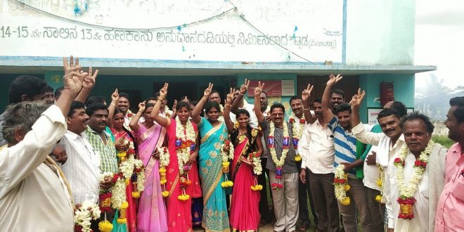 ಮಂಡ್ಯ : ಪಟ್ಟಣದ ಚೌಡೇನಹಳ್ಳಿ ಗ್ರಾಮ ಪಂಚಾಯಿತಿಯ ಸಾಮಾನ್ಯ ಮಹಿಳೆ ಅದ್ಯಕ್ಷರ ಸ್ಥಾನ ತೆರವು ಆಗಿದ್ದ ಕಾರಣ ಇಂದು ಚುನಾವಣೆ ನಿಗಧಿಯಾಗಿತ್ತು.ಚುನಾವಣೆ ಶುಭ ರವೀಂದ್ರ ರವರನ್ನು ವರತುಪಡಿಸಿ ಮತ್ಯಾರು ನಾಮ ಪತ್ರ ಸಲ್ಲಿಸದ ಕಾರಣ ಚುನಾವಣಾ ಅಧಿಕಾರಿ ಶುಭಾ ರವೀಂದ್ರ ರವನ್ನು ಅವಿರೋಧವಾಗಿ ಅದ್ಯಕ್ಷರು ಎಂದು ಘೋಷಿಸಿದರು.ಈ ಸಂದರ್ಭದಲ್ಲಿ ಶುಭಾರವೀಂದ್ರ ರವರ ಬೆಂಬಲಿಗರು ಅದ್ಯಕ್ಷರಾದ ಇನ್ನಲೆಯಲ್ಲಿ ಪಟಾಕಿ ಸಿಡಿಸಿ ಸಿಹಿ ಹಂಚಿ ಸಂಭ್ರಮಿಸಿದರು. ಗ್ರಾಮ ಪಂಚಾಯತಿ ಉಪಾದ್ಯಕ್ಷ ಮಾಣಿಕನಹಳ್ಳಿ ಕೃಷ್ಣೇಗೌಡ, ಸದಸ್ಯರಾದ ಶೆಟ್ಟಹಳ್ಳಿ ಕೃಷ್ಣೇಗೌಡ, ಸಿದ್ದಾಪುರ ನಾರಾಯಣ್, ಕೃಷ್ಣಾಪುರ ಗಿರೀಶ್, ಕಾರಿಗನಹಳ್ಳಿ ಜಯರಾಮು, ಮತ್ತು ಮಹಿಳಾ ಸದಸ್ಯರುಗಳು ನೂತನ ಅದ್ಯಕ್ಷರಿಗೆ ಶುಭಕೋರಿದರು.