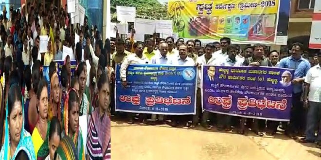 ಗುತ್ತಿಗೆ ಪೌರ ಕಾರ್ಮಿಕರ ಸಂಘದ ಅಧ್ಯಕ್ಷನ ಬಂಧನ ಒತ್ತಾಯಿಸಿ ಪ್ರತಿಭಟನೆ