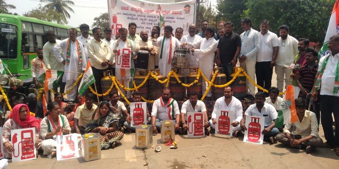 ಕೇಂದ್ರದ ಬೆಲೆಯೇರಿಕೆಯನ್ನು ಖಂಡಿಸಿ ಬ್ಲಾಕ್ ಅಧ್ಯಕ್ಷರಾದ ನಾಗರಾಜ ಗೌರಿ ನೇತೃತ್ವದಲ್ಲಿ ಕಾಂಗ್ರೆಸ್ ಕಾರ್ಯಕರ್ತರು