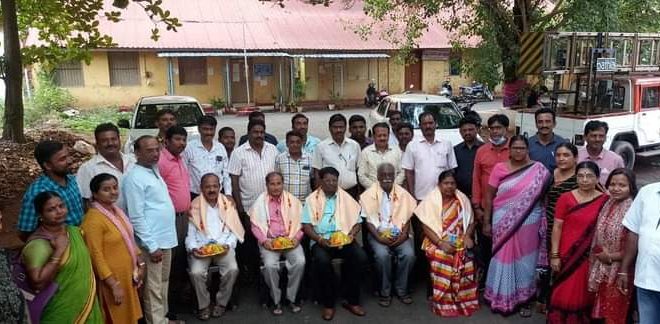 ಹುಬ್ಬಳ್ಳಿ ಧಾರವಾಡ ಮಹಾನಗರ ಪಾಲಿಕೆ ನೌಕರರ ಸಂಘದ ವತಿಯಿಂದ ಇಂದು ನಿವೃತ್ತಿ ಹೊಂದಿರುವ ಗಾಳೆಮ್ಮನವರ ಸಹಾಯಕ ಆಯುಕ್ತರು, ಮೆಣಸಿನಕಾಯಿ ಹಿರಿಯ ಅರೋಗ್ಯ ನಿರೀಕ್ಷಕರು, ಹಾಲಪ್ಪನವರು ಕಚೇರಿ ವ್ಯವಸ್ಥಾಪಕರು,