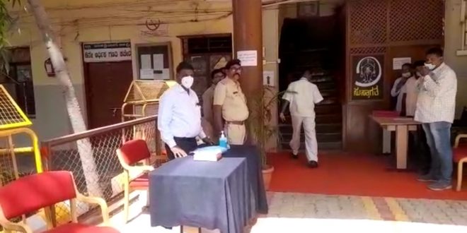 ಹುಬ್ಬಳ್ಳಿ : ಮೇಯರ್ ಮತ್ತು ಉಪಮೇಯರ್ ಚುನಾವಣೆ ಹಿನ್ನೆಲೆಯಲ್ಲಿ ಪಾಲಿಕೆ ಸದಸ್ಯರಿಗೆ ಕೊರೊನಾ ಮುಂಜಾಗ್ರತಾ ಕ್ರಮವಾಗಿ ಥರ್ಮಲ್ ಸ್ಕ್ಯಾನಿಂಗ್ ಹಾಗೂ ಮಾಸ್ಕ್ ಬಳಸುವಂತೆ ಚಿಟಗುಪ್ಪಿ ಆಸ್ಪತ್ರೆ ಸಿಬ್ಬಂದಿಗಳು ಸಲಹೆ ನೀಡುತ್ತಿದ್ದಾರೆ. ಕೊರೊನಾ ನಾಲ್ಕನೇ ಅಲೆ ಭೀತಿ ಹಿನ್ನೆಲೆಯಲ್ಲಿ ಇಂದು ನಡೆಯುತ್ತಿರುವ ಮೇಯರ್ ಮತ್ತು ಉಪಮೇಯರ್ ಚುನಾವಣೆ ಹಿನ್ನೆಲೆಯಲ್ಲಿ ಎಲ್ಲಾ ಸದಸ್ಯರಿಗೆ ಥರ್ಮಲ್ ಸ್ಕ್ಯಾನ್ ಮಾಡುತ್ತಿದ್ದಾರೆ .