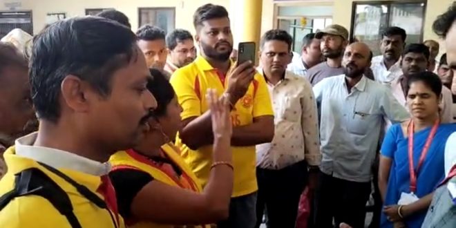 ಹುಬ್ಬಳ್ಳಿ:- ಮಿನಿ ವಿಧಾನ ಸೌದದಲ್ಲಿರುವ ಸರಕಾರಿ ಕಛೇರಿಗೆ ನುಗ್ಗಿದ ಕರ್ನಾಟಕ ರಾಷ್ಟ್ರ ಸಮಿತಿ ಪಕ್ಷದ ಕಾರ್ಯಕರ್ತರು, ಸರಕಾರಿ ಅಧಿಕಾರಿಗಳಿಗೆ ಹಾಗೂ ಸಿಬ್ಬಂದಿಗಳಿಗೆ ನಿಮ್ಮ ಬಗ್ಗೆ ಮಾಹಿತಿ ಇನ್ನಿತರ ದಾಖಲೆ ಮತ್ತು ನೀವೂ ಸರಿಯಾಗಿ ಕೆಲಸ ಮಾಡಿತ್ತಿಲ್ಲ ಎಂದು ಕಿರುಕುಳ ನೀಡಿರುವ ಬಲವಾದ ಆರೋಪ ಕೇಳಿ ಬಂದಿದೆ.ಹೌದು.ಮುಂಜಾನೆಯಿಂದಲೇ ಪಕ್ಷದ ಕಾರ್ಯಕರ್ತರು ನಿರಂತರವಾಗಿ ಗಂಟೆಗಳ ಕಾಲ ಸಿಬ್ಬಂದಿ ಹಾಗೂ ಅಧಿಕಾರಿಗಳ ಮಾಹಿತಿ ನೀಡಿ ಎಂದು ಕಿರುಕುಳ ನೀಡುತ್ತಿದ್ದಾರೆ ಎಂದು ನೌಕರರು ತಮ್ಮ ಅಳಲು ತೋಡಿಕೊಂಡಿದ್ದಾರೆ.