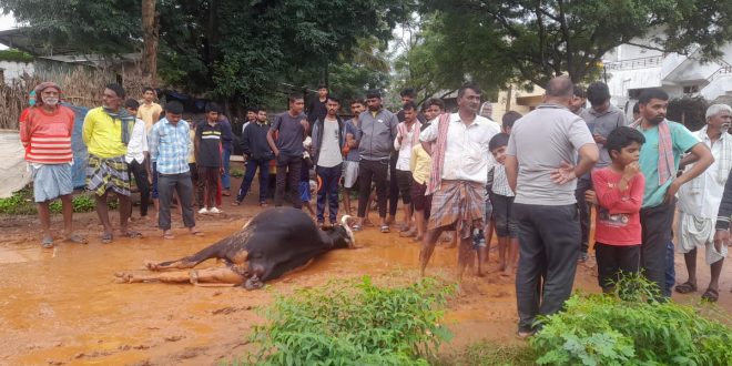 ನಿನ್ನೆ ಸಂಜೆ ಹೊಲದಿಂದ ಮನೆಗೆ ಹೋಗುತ್ತಿರುವ ವೇಳೆಯಲ್ಲಿ ದುರ್ಘಟನೆ ಸಂಭವಿಸಿದೆ. ಗುರುಸಿದ್ದಪ್ಪ ರೇವಣ್ಣವರ ಎಂಬಾತರಿಗೆ ಈ ಎತ್ತು ಸೇರಿದ್ದೆ. ಗುರುಸಿದ್ದಪ್ಪ ಹೊಲದಿಂದ ಮನೆಗೆ ಹೋಗುವಾಗ ವಿದ್ಯುತ್ ಕಂಬದಲ್ಲಿ ವಿದ್ಯುತ್ ಪ್ರವಸಿದ ಕಾರಣದಿಂದ ಅಪಘಾತ ನಡೆದಿದೆ. ರೈತ ಗುರುಸಿದ್ದಪ್ಪನಿಗೂ ವಿದ್ಯುತ್ ಸ್ಪರ್ಶಿದೆ. ಪ್ರಾಣಾಪಾಯ ದಿಂದ ಪಾರಾಗಿದ್ದಾರೆ.