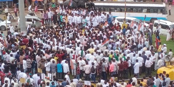 ಕೆಪಿಸಿಸಿ ಅಧ್ಯಕ್ಷ ಡಿ.ಕೆ. ಶಿವಕುಮಾರ್ ಅವರು ಸ್ಟೇಷನ್ ರಸ್ತೆಯಲ್ಲಿರುವ ಡಾ.ಬಿ.ಆರ್. ಅಂಬೇಡ್ಕರ್ ಪ್ರತಿಮೆಗೆ ಮಾಲಾರ್ಪಣೆ ಮಾಡುವ ಮೂಲಕ ಚನ್ನಮ್ಮ ವೃತ್ತದವರೆಗೆ ನಡೆಯಲಿರುವ ಮೆರವಣಿಗೆಗೆ ಚಾಲನೆ ನೀಡಿದರು. ಪಕ್ಷದ ಹಲವು ಮುಖಂಡರು ಪ್ರತಿಭಟನೆಯಲ್ಲಿ ಭಾಗವಹಿಸಿದ್ದರು.