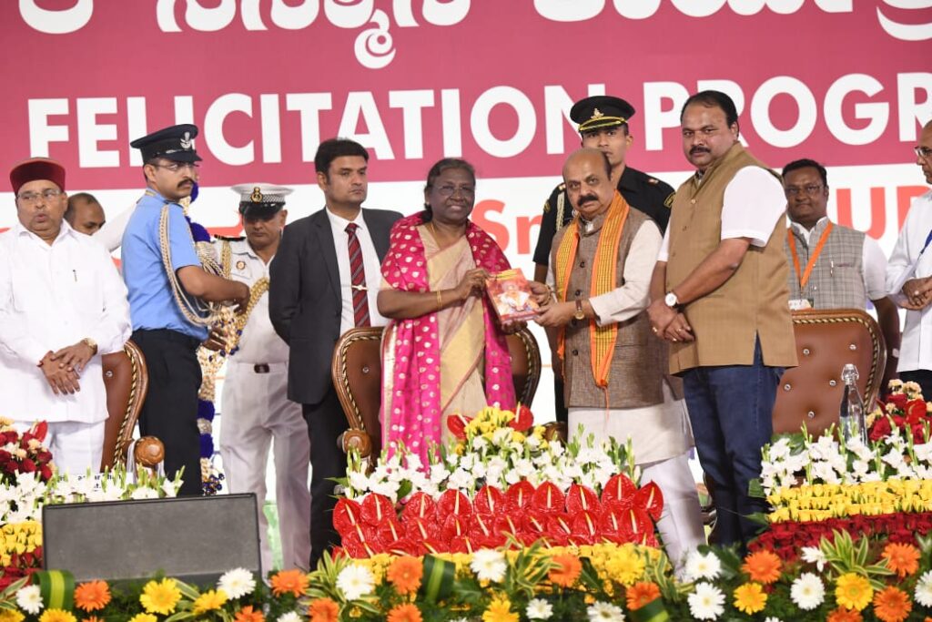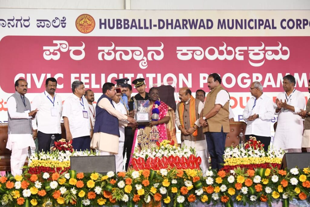 ದೇಶದ ರಾಷ್ಟ್ರಪತಿಯಾಗಿ ಶ್ರೀಮತಿ ದ್ರೌಪದಿ ಮುರ್ಮು ಅವರಿಗೆ ಶ್ರೀಸಿದ್ಧಾರೂಢರ ಬೆಳ್ಳಿ ಪ್ರತಿಮೆ,ಬಿನ್ನವತ್ತಳೆ,ಯಾಲಕ್ಕಿ ಹಾರ,ಶ್ರೀಸಿದ್ಧಾರೂಢರ ಮಹಾತ್ಮೆ ಕುರಿತ ಗ್ರಂಥಗಳು,ಧಾರವಾಡ ಪೇಡೆಯನ್ನು ಮಹಾನಗರಪಾಲಿಕೆ ನೀಡಿ ಪೌರಸನ್ಮಾನ ನೀಡಿ,ಗೌರವಿಸಿತು.