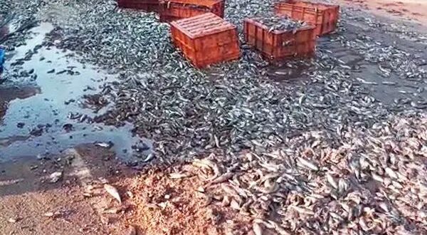 ಉಡುಪಿ ಜಿಲ್ಲೆಯ ಕಾಪುವಿನ ಉಚ್ಚಿಲ ಮೂಳೂರು ಸಲಪಿ ಮಸೀದಿ ಬಳಿ ಹೀಗೊಂದು ದೃಶ್ಯ ಕಂಡುಬಂದಿದೆ. ಮಂಗಳೂರಿನಿಂದ ಉಡುಪಿ ಕಡೆಗೆ ಮೀನುಗಳನ್ನು ಸಾಗಿಸುತ್ತಿದ್ದ ಲಾರಿಯೊಂದು ಮಗುಚಿಬಿದ್ದ ಪರಿಣಾಮವಾಗಿ ಅದರಲ್ಲಿದ್ದ ಟ್ರೇಗಳಲ್ಲಿ ಬಿದ್ದು, ಮೀನುಗಳು ರಸ್ತೆ ಮೇಲೆ ಚೆಲ್ಲಾಪಿಲ್ಲಿಯಾಗಿವೆ.