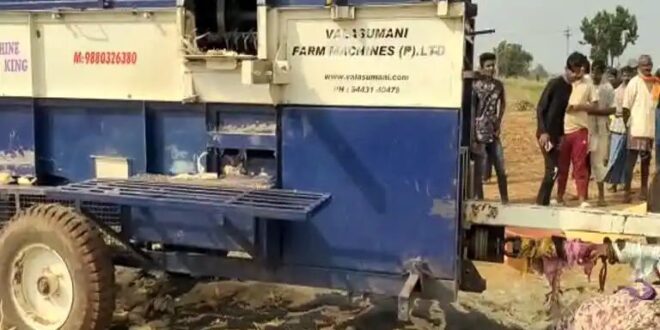 ಮೆಕ್ಕೆ ಜೋಳದ ರಾಶಿ ಮಾಡುವ ವೇಳೆ ಭಾನುವಾರ ಈ ಘಟನೆ ನಡೆದಿದೆ.