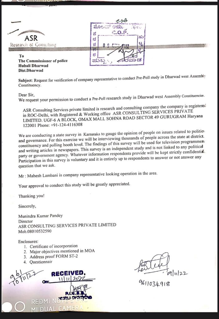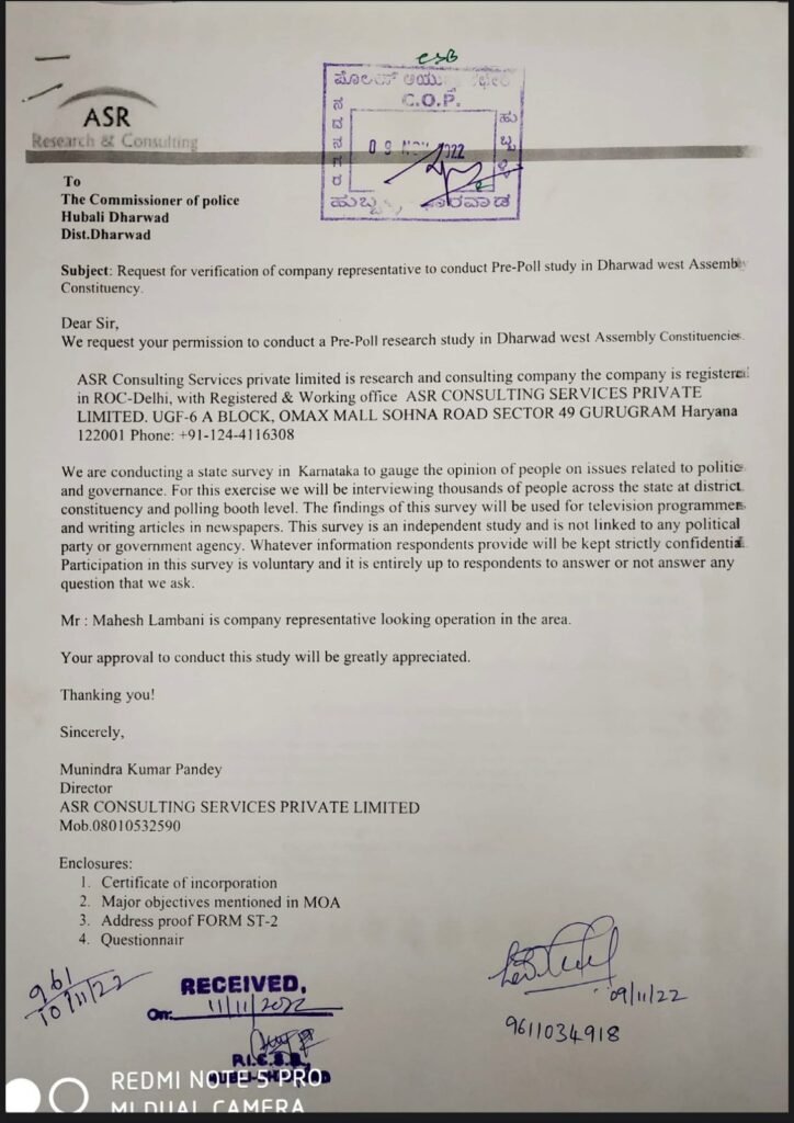 ಈ ಸರ್ವೆ ತಂಡ ASR ಕನ್ಸಲ್ಟಿಂಗ್ ಸರ್ವಿಸ್ ಪ್ರೈವೆಟ್ ಲಿಮಿಟೆಡ್ ನಿಂದ ಅನುಮತಿ ಪಡೆದಿದೆ. ಪ್ರಿ ಪೋಲ್ ಸರ್ವೆ ಮಾಡೋದಾಗಿ ಹುಬ್ಬಳ್ಳಿ ಧಾರವಾಡ ಕಮೀಷನರ್ ಅವರಿಂದ ಸ್ವೀಕೃತಿ ಪತ್ರ ಪಡೆದುಕೊಂಡಿದೆ. ಇದೊಂದು ಚಿಲುಮೆ ಮಾದರಿಯ ಪ್ರಕರಣ ಎಂದು ಕಾಂಗ್ರೆಸ್ ಮುಖಂಡರು ಆರೋಪಿಸಿದ್ದಾರೆ.ಇದು ಅಲ್ಪ ಸಂಖ್ಯಾತ ಮತಗಳ ಡಿಲೀಟ್ ಮಾಡೋ ಹುನ್ನಾರವಿದೆ. ಬಿಜೆಪಿ ನಾಯಕರು ಸೋಲಿನ ಭಯದಿಂದ ಸರ್ವೆ ಮಾಡಸ್ತೀದಾರೆ.ಈ ಬಗ್ಗೆ ಹಳೇ ಹುಬ್ಬಳ್ಳಿ ಪೊಲೀಸ್ ಠಾಣೆಯಲ್ಲಿ ಪ್ರಕರಣ ದಾಖಲಿಸಿದ್ದು, ಪೊಲೀಸರು ತನಿಖೆ ನಡೆಸುವಂತೆ ಕಾಂಗ್ರೆಸ್ ನಾಯಕರು ಒತ್ತಾಯಿಸಿದ್ದಾರೆ.