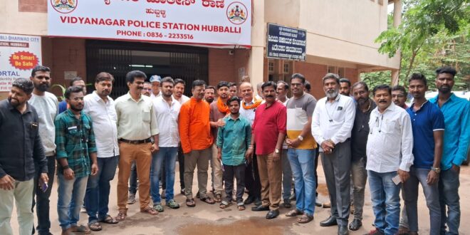 ಹುಬ್ಬಳ್ಳಿ ಶನಿವಾರ ತಡರಾತ್ರಿ ಭಜರಂಗದಳ ಕಾರ್ಯಕರ್ತನ ಮೇಲೆ ನಡೆದ ಪ್ರಕರಣಕ್ಕೆ ಸಂಭವಿಸಿದಂತೆ ಇಂದು ಭಜರಂಗದಳದ ಕಾರ್ಯಕರ್ತರು ಹುಬ್ಬಳ್ಳಿ ವಿದ್ಯಾನಗರ ಪೋಲಿಸ್ ಠಾಣೆಯಲ್ಲಿ ದೂರನ್ನು ನೀಡಿದ್ದಾರೆ.