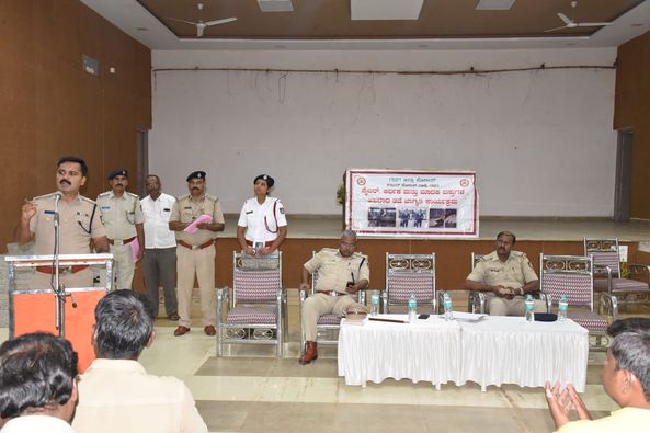 ಗದಗ ; ಅಟೋ ಮಾಲಕರು ಮತ್ತು ಚಾಲಕರಿಗೆ ಕಾನೂನು ಅರಿವು ಮತ್ತು ರಸ್ತೆ ನಿಯಮಗಳ ಪಾಲನೆ ಕುರಿತು ಪೊಲೀಸ್ ಭವನದಲ್ಲಿ ತಿಳುವಳಿಕೆ ಕಾರ್ಯಕ್ರಮ ಏರ್ಪಡಿಸಿ ಎಲ್ಲಾ ಮಾಲೀಕ ಮತ್ತು ಚಾಲಕರಿಗೆ ಕಾನೂನು ಪಾಲಿಸುವುದು ಮತ್ತು ಸಾರ್ವಜನಿಕರೊಂದಿಗೆ ಸೌಜನ್ಯಯುತವಾಗಿ ನಡೆದುಕೊಂಡು ಇಲಾಖೆಯೊಂದಿಗೆ ಕೈಜೋಡಿಸುವಂತೆ ಕರೆ ನೀಡಲಾಯಿತು.