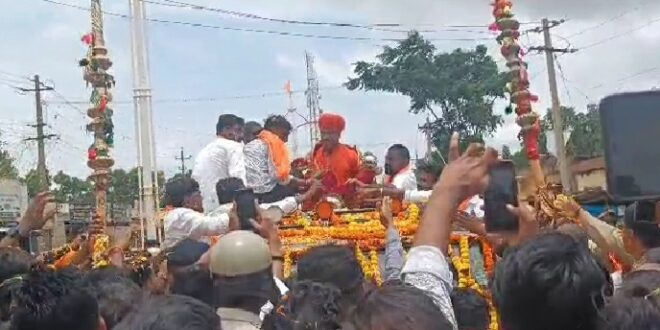 ಧಾರವಾಡ : ಪೀಠಾಧಿಪತಿ ನೇಮಕ ವಿಚಾರದಲ್ಲಿ ಧಾರವಾಡ ತಾಲೂಕಿನ ಗರಗ ಕಲ್ಮಠ ಸದ್ದು ಮಾಡುತ್ತಿದೆ. ಗರಗ ಮಡಿವಾಳೇಶ್ವರ ಮಠಕ್ಕೆ ಆಗಮಿಸಿದ ಪ್ರಶಾಂತ ದೇವರು ಸ್ವಾಮೀಜಿಗೆ ಗ್ರಾಮದ ಸರ್ವ ಧರ್ಮಗಳ ಮುಖಂಡರು ಅದ್ದೂರಿಯಾಗಿ ಸ್ವಾಗತಿಸಿ ಪುಷ್ಪ ಮಳೆ ಗೈದರು.