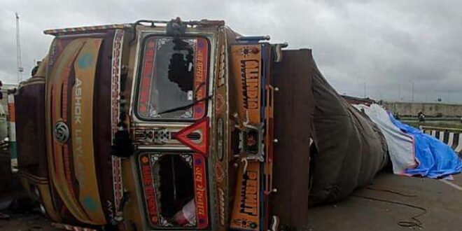 ಹುಬ್ಬಳ್ಳಿ: ಮುಂದಿನ ಗಾಲಿಯ ಟೈರ್ ಬ್ಲಾಸ್ಟ್ ಆಗಿ ಅಕ್ಕಿ ಲಾರಿಯೊಂದು ಪಲ್ಟಿಯಾದ ಘಟನೆ ಹುಬ್ಬಳ್ಳಿಯ ಕುಂದಗೋಳ ರಿಂಗ್ ರೋಡ್ನಲ್ಲಿ ಈಗಷ್ಟೇ ನಡೆದಿದೆ.
