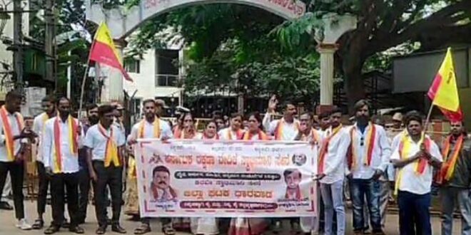 ಧಾರವಾಡ: ಮಣಿಪುರ ರಾಜ್ಯದಲ್ಲಿನ ಹಿಂಸಾಚಾರ ಹಾಗೂ ಅತ್ಯಾಚಾರ ಪ್ರಕರಣ ಖಂಡಿಸಿ ಧಾರವಾಡ ಜಿಲ್ಲಾಧಿಕಾರಿ ಕಚೇರಿ ಎದುರು ಕರ್ನಾಟಕ ರಕ್ಷಣಾ ವೇದಿಕೆ ಸ್ವಾಭಿಮಾನಿ ಸೇನೆ ಕಾರ್ಯಕರ್ತರು ಪ್ರತಿಭಟನೆ ನಡೆಸಿದರು.