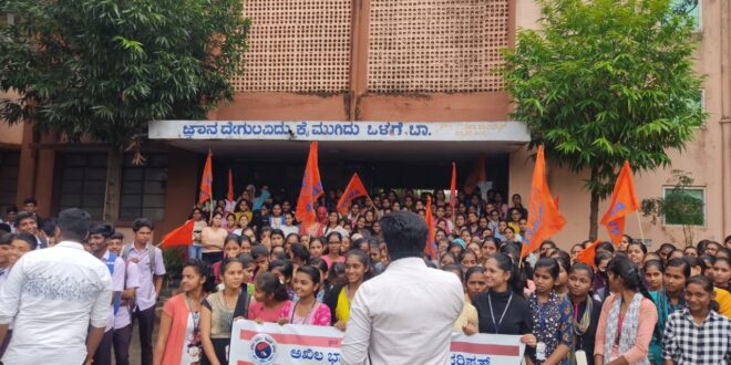 ಹುಬ್ಬಳ್ಳಿ:ವಿವಿಧ ಬೇಡಿಕೆ ಈಡೇರಿಸಲು ಆಗ್ರಹಿಸಿ ಅಖಿಲ ಭಾರತ ವಿದ್ಯಾರ್ಥಿ ಪರಿಷತ್ ಕಾರ್ಯಕರ್ತ ಹಾಗೂ ವಿದ್ಯಾರ್ಥಿಗಳು ಪ್ರತಿಭಟನೆ ನಡೆಸಿದರು.