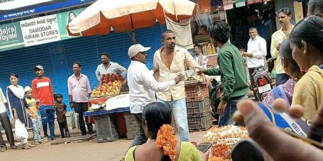 ಧಾರವಾಡ : ಸೊಂಟದಲ್ಲಿ ಚಾಕು ಇಟ್ಟುಕೊಂಡು ಕುಡುಕನೊಬ್ಬ ಪುಂಡಾಟ ನಡೆಸಿ, ಬಾಳೆಹಣ್ಣು ವ್ಯಾಪಾರಸ್ಥರಿಂದ ಸಾರ್ವಜನಿಕವಾಗಿಯೇ ಗೂಸಾ ತಿಂದ ಘಟನೆ ಧಾರವಾಡದಲ್ಲಿ ನಡೆದಿದೆ. ಧಾರವಾಡದ ಹಣ್ಣಿನ ಮಾರುಕಟ್ಟೆಯಲ್ಲಿ ಕುಡುಕನೊಬ್ಬ ವಿಪರೀತ ಮದ್ಯ ಕುಡಿದು ಬಾಳೆಹಣ್ಣಿನ ವ್ಯಾಪಾರಿಯೊಂದಿಗೆ ಜಗಳ ತೆಗೆದಿದ್ದ. ಬಾಳೆಹಣ್ಣು ವ್ಯಾಪಾರಿಗಳು ಆತನಿಗೆ ಸಾರ್ವಜನಿಕವಾಗಿಯೇ ಗೂಸಾ ಸಹ ಕೊಟ್ಟಿದ್ದಾರೆ.