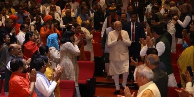 ನವದೆಹಲಿಯ ಸಂಸತ್ ಭವನದಲ್ಲಿ ನಡೆಯುತ್ತಿರುವ ಬಿಜೆಪಿ ಸಂಸದೀಯ ಮಂಡಳಿ ಸಭೆಯಲ್ಲಿ ಪ್ರಧಾನಿ ನರೇಂದ್ರ ಮೋದಿಯನ್ನು ಬಿಜೆಪಿ ರಾಷ್ಟ್ರೀಯ ಅಧ್ಯಕ್ಷ ಜೆ. ಪಿ. ನಡ್ಡಾ ಸನ್ಮಾನಿಸಿದರು. 5 ರಾಜ್ಯಗಳ ವಿಧಾನಸಭೆ ಚುನಾವಣೆ ಫಲಿತಾಂಶ ಘೋಷಣೆ ಬಳಿಕ ಮೊದಲ ಬಾರಿಗೆ ಸಂಸದೀಯ ಮಂಡಳಿ ಸಭೆ ನಡೆಯುತ್ತಿದೆ.ಪ್ರಧಾನಿ ನರೇಂದ್ರ ಮೋದಿ, ಬಿಜೆಪಿ ಅಧ್ಯಕ್ಷ ಜೆ. ಪಿ. ನಡ್ಡಾ ಮತ್ತು ಕೇಂದ್ರ ಗೃಹ ಸಚಿವ ಅಮಿತ್ ಶಾ ಬಿಜೆಪಿ ಸಂಸದೀಯ ಮಂಡಳಿ ಸಭೆಯಲ್ಲಿ ಕಾಣಿಸಿಕೊಂಡಿದ್ದು, ಹೀಗೆ. 5 ರಾಜ್ಯಗಳ ವಿಧಾನಸಭೆ ಚುನಾವಣೆಯಲ್ಲಿ ಮೂರು ರಾಜ್ಯಗಳಲ್ಲಿ ಬಿಜೆಪಿ ಜಯಗಳಿಸಿದೆ.