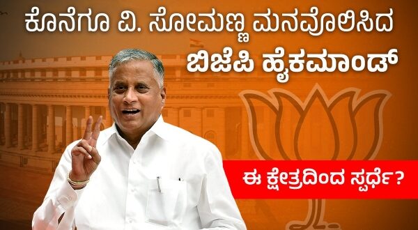 ಬೆಂಗಳೂರು: 2023 ವಿಧಾನಸಭಾ ಚುನಾವಣೆಯಲ್ಲಿ ಎರಡು ಕ್ಷೇತ್ರದಿಂದ ಸ್ಪರ್ಧಿಸಿದ್ದ ಮಾಜಿ ಸಚಿವ ವಿ ಸೋಮಣ್ಣ ಹೀನಾಯವಾಗಿ ಸೋಲು ಅನುಭವಿಸಿದ್ದು, ಬಹಿರಂಗವಾಗಿ ಬಿಜೆಪಿ ರಾಜ್ಯಾಧ್ಯಕ್ಷ ಹುದ್ದೆಗೆ ಬೇಡಿಕೆ ಇಟ್ಟಿದ್ರು. ಆದರೆ, ವಿಜಯೇಂದ್ರ ಅವರಿಗೆ ರಾಜ್ಯಾಧ್ಯಕ್ಷ ಸ್ಥಾನ ನೀಡದ ಬಳಿಕೆ ಅಸಮಾಧಾನಗೊಂಡ, ಪಕ್ಷ ತ್ಯಾಗಕ್ಕೆ ವಿ ಸೋಮಣ್ಣ ಮುಂದಾಗಿದ್ದು, ಕೊನೆಗೂ ವಿ ಸೋಮಣ್ಣ ಮನವೊಲಿಸುವಲ್ಲಿ ಯಶಸ್ವಿಯಾಗಿದೆ.