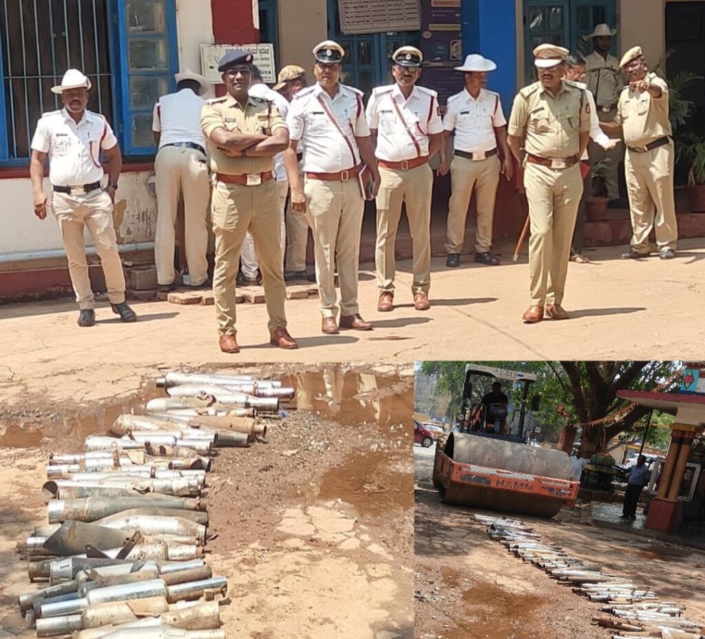 ಹೌದು.. ಡಿಸಿಪಿ ಟ್ರಾಫಿಕ್ ಆ್ಯಂಡ್ ಕ್ರೈಮ್ ನೇತೃತ್ವದಲ್ಲಿ ಕಾರ್ಯಾಚರಣೆ ನಡೆಸಿ ಕರ್ಕಶ ಶಬ್ದ ಮಾಡುವ ಬೈಕ್ ಸವಾರರ ಬೈಕ್ ಸೈಲೆನ್ಸರ್ ವಶಕ್ಕೆ ಪಡೆದು ರೋಡ್ ರೂಲರ ಮೂಲಕ ಪುಡಿ ಪುಡಿ ಮಾಡಿ ಬೈಕ್ ಮೂಲಕ ಶಬ್ದ ಮಾಲಿನ್ಯ ಮಾಡದಂತೆ ಬಿಸಿ ಮುಟ್ಟಿಸಿದ್ದಾರೆ.ಈಗಾಗಲೇ ಬೇಕಾಬಿಟ್ಟಿಯಾಗಿ