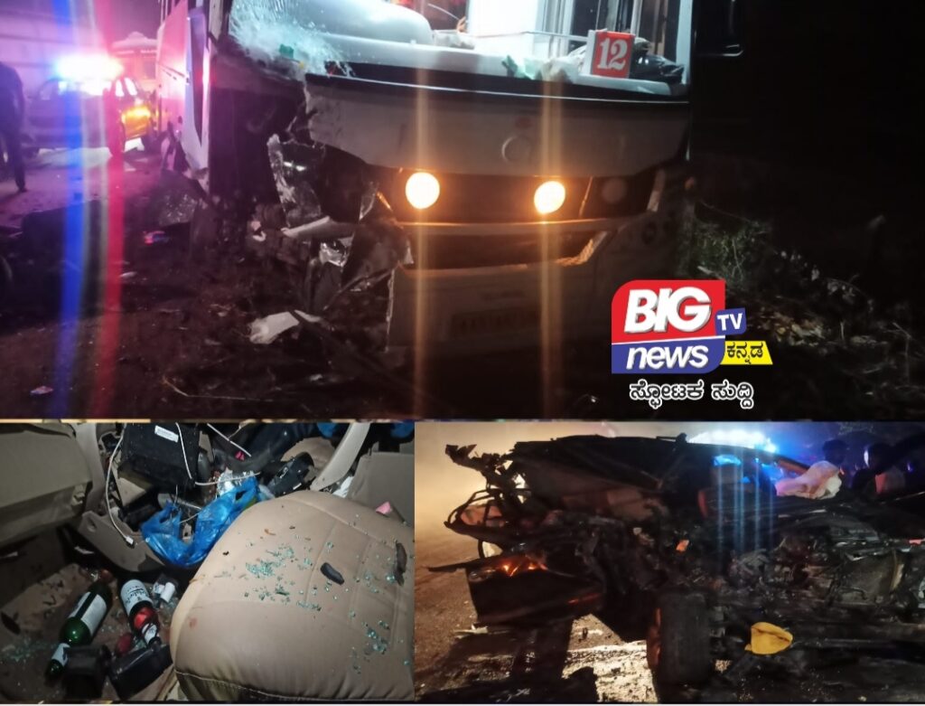 ಹುಬ್ಬಳ್ಳಿ: ಖಾಸಗಿ ಟ್ರಾವೆಲ್ಸ್ ವಾಹನಕ್ಕೆ ಕಾರು ಡಿಕ್ಕಿ ಹೊಡೆದ ಪರಿಣಾಮ ಮೂವರು ಸಾವನ್ನಪ್ಪಿದ್ದು, ವ್ಯಕ್ತಿಯೋರ್ವನಿಗೆ ಗಂಭೀರವಾಗಿ ಗಾಯಗಳಾಗಿರುವ ಘಟನೆ ಹುಬ್ಬಳ್ಳಿ ತಾಲೂಕಿನ ಅಂಚಟಗೇರಿ ಬಳಿ ನಡೆದಿದೆ.ಭೀಕರ ಅಪಘಾತವಾಗಿದಲ್ಲಿ ಮೂವರು ಸಾವನ್ನಪ್ಪಿದ್ದಾರೆ. ಒರ್ವನಿಗೆ ಗಾಯಗಳಾಗಿದ್ದು,