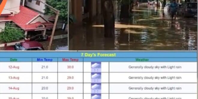 ಮುಂದಿನ ಗುರುವಾರದವರೆಗೆ ಅಲ್ಪ ಪ್ರಮಾಣದ ಮಳೆಯಾಗಲಿದ್ದು, ಶುಕ್ರವಾರ ಮತ್ತು ಶನಿವಾರ ನಗರದಲ್ಲಿ ಭಾರೀ ಮಳೆಯಾಗಲಿದೆ ಎಂದು ವರದಿ ನೀಡಿದ್ದು ಎಲ್ಲೋ ಅಲರ್ಟ್ ಘೋಷಣೆ ಮಾಡಿದೆ.ಆಗಸ್ಟ್ 13 ರಿಂದ ಆಗಸ್ಟ್ 17ರವರೆಗಿನ ವರದಿಯನ್ನು ಬಿಡುಗಡೆ ಮಾಡಿದೆ. ಸೋಮವಾರ ಬೆಳ್ಳಂಬೆಳಗ್ಗೆ ಇದ್ದಕ್ಕಿದ್ದಂತೆಯೇ ವಿಪರೀತ ಮಳೆಯಾಗಿದ್ದು, ಜನಜೀವನ ಅಸ್ತವ್ಯಸ್ತವಾಗಿದೆ. ಬೆಂಗಳೂರು ನಗರ ಮತ್ತು ಹೊರ ವಲಯದಲ್ಲಿ ಹಲವು ಕಡೆ ಮನೆಗಳು ಜಲಾವೃತವಾಗಿದೆ.