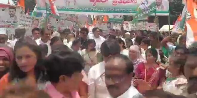ಧಾರವಾಡ: ಬಿಜೆಪಿ ಹಾಗೂ ಜೆಡಿಎಸ್ ಮುಖ್ಯಮಂತ್ರಿ ಸಿದ್ದರಾಮಯ್ಯನವರ ತೇಜೋವಧೆ ಮಾಡುತ್ತಿವೆ ಎಂದು ಆರೋಪಿಸಿ ಧಾರವಾಡ ನಗರದಲ್ಲಿ ಕಾಂಗ್ರೆಸ್ ಕಾರ್ಯಕರ್ತರ ನೇತೃತ್ವದಲ್ಲಿ ಪ್ರತಿಭಟನೆಯನ್ನು ನಡೆಸಲಾಯಿತು. ದಾರವಾಡದ ಕಡಪ ಮೈದಾನದಿಂದ ಜಿಲ್ಲಾಧಿಕಾರಿ ಕಚೇರಿಯವರೆಗೆ ಕಾಂಗ್ರೆಸ್ ಕಾರ್ಯಕರ್ತರು ಪ್ರತಿಭಟನಾ ಮೆರವಣಿಗೆ ನಡೆಸಿ, ರಾಜಭವನದ ದುರುಪಯೋಗ ಮಾಡಿಕೊಂಡು ಮುಖ್ಯಮಂತ್ರಿ ಸಿದ್ದರಾಮಯ್ಯಗೆ ನೋಟಿಸ್ ನೀಡಲಾಗಿದೆ ಎಂದು ಬಿಜೆಪಿ ಹಾಗೂ ಜೆಡಿಎಸ್ ವಿರುದ್ಧ ಪ್ರತಿಭಟನಾಕಾರರು ಆಕ್ರೋಶ ವ್ಯಕ್ತಪಡಿಸಿದರು.